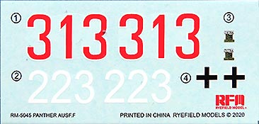 Natürlich sind hier weder Zeiten, Orte oder Einheiten angegeben, da der Panther F nicht zweifelsfrei im Einssatz war und wenn dann nur in wenigen EInzelfahrzeugen. Daher kann man diese Vorschläge als "what-if" oder "best guess" annehmen. Interessanterweise sind die Farbangaben nicht mehr von Amig, sondern von Mr.Hobby.