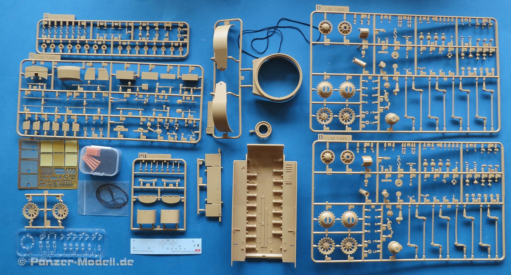 Insgesamt ein toller Bausatz, der wirklich ersten Tigerausführung mit allen richtigen und wichtigen Merkmalen und mit einer neuen Art der beweglichen Ketten, die einen guten Eindruck macht. Daumen hoch.