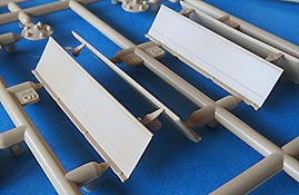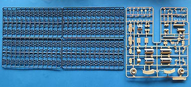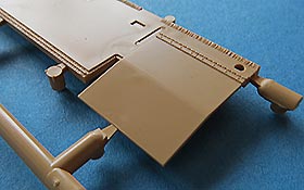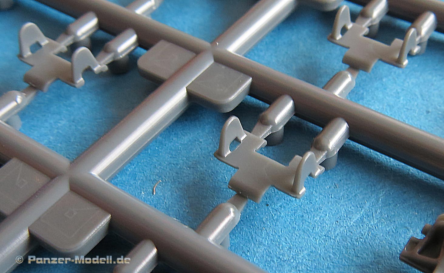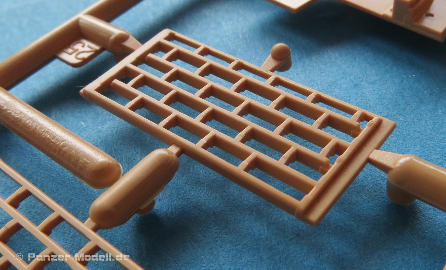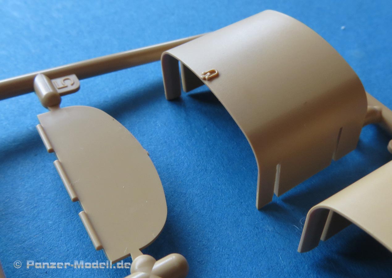 Für die vorderen Kettenabdeckungen, die mit der Glacispaltte in einem Stück angebracht werden, liegen 3 verschiedene Muster an Riffelblech PE Teilen bei.