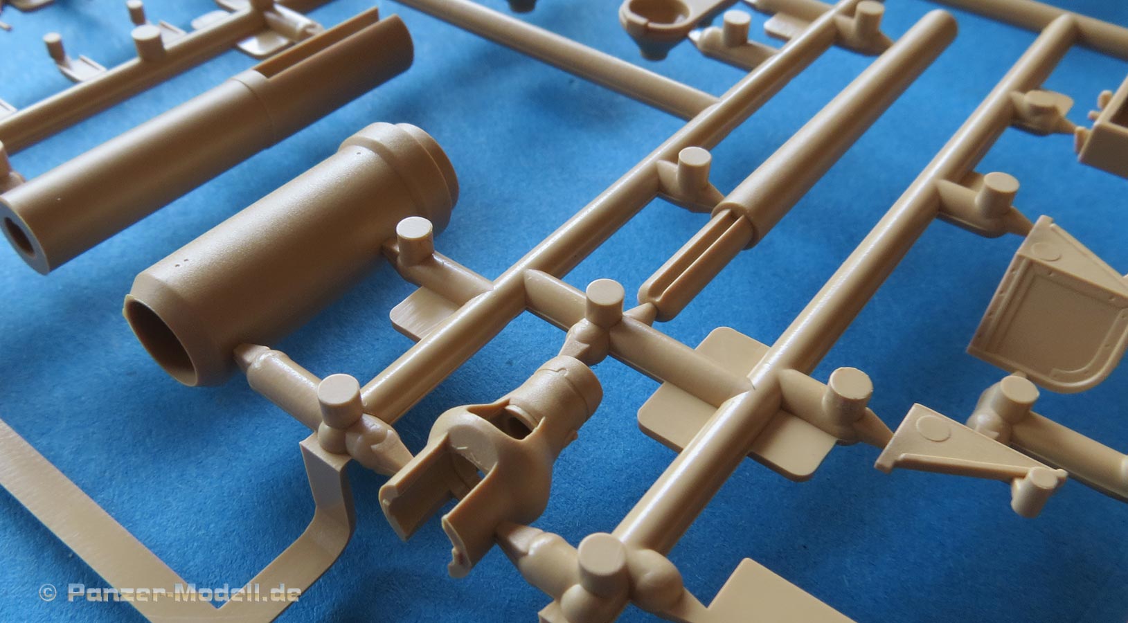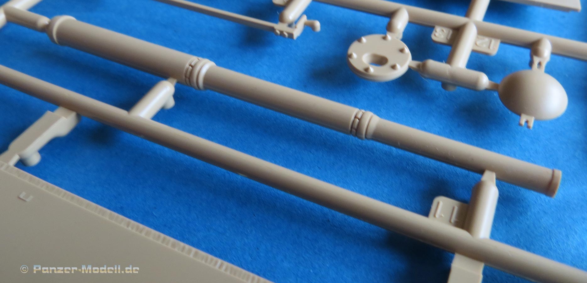 Das Kanonenrohr setzt sich aus 3 Teilen plus Mündungsbremse zusammen. Glücklicherweise nicht als Halbteile, so hat man hier keine nervigen Nahtstellen. .