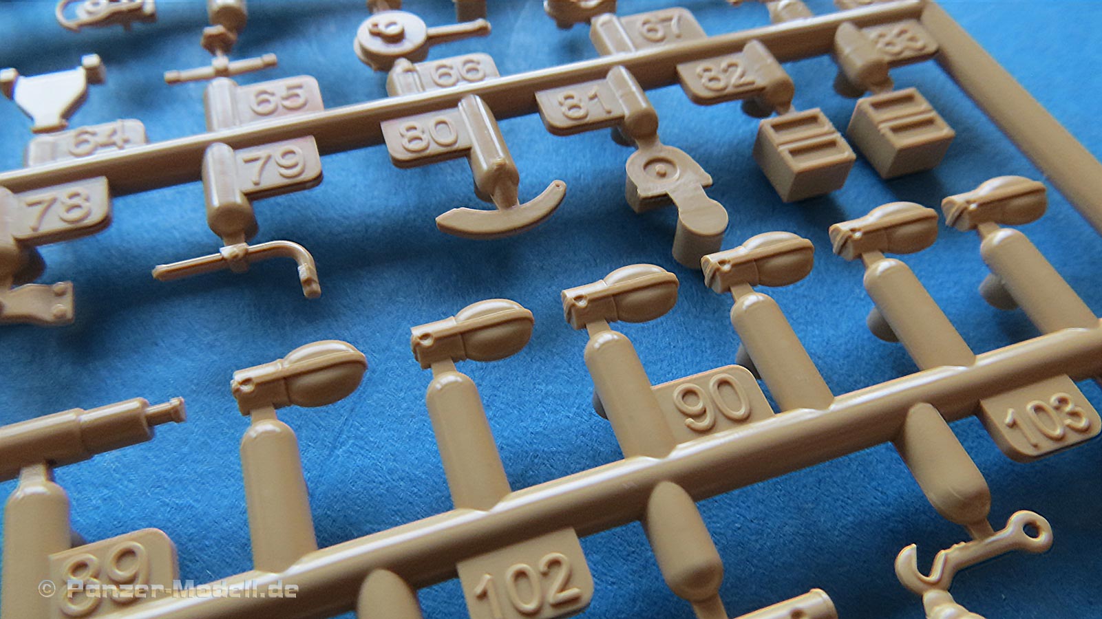 Die Details der Bauteile sind sehr fein und sehr gut und scharf dargestellt. Schweißnähte, Schraubenköpfe, Aufdruck auf den Gummibandagen, etc.. Alles sehr erfreulich und überzeugend.