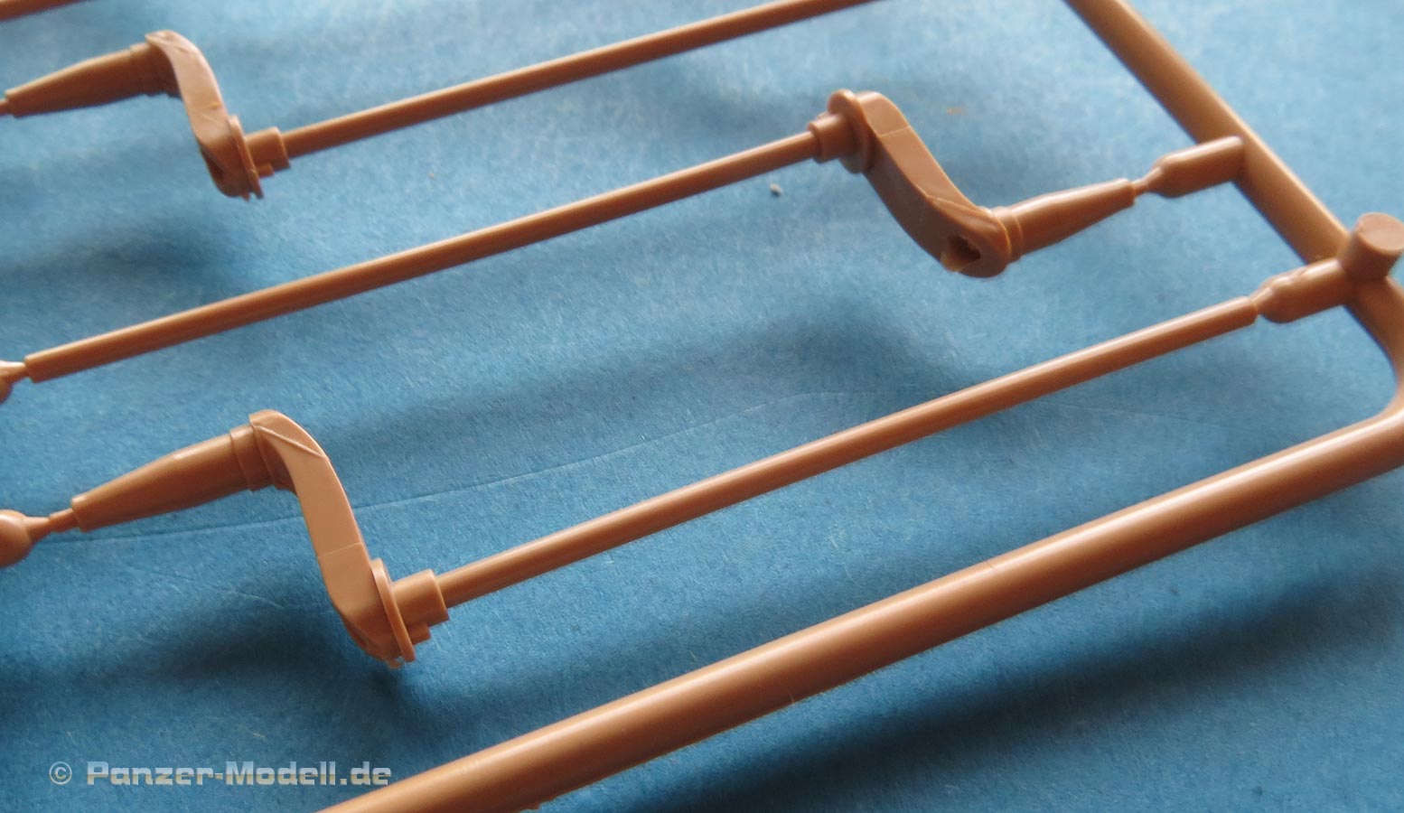 Die Werkzeuge sind schön und fein dargestellt und können wahlweise mit den angegossenen Halterungen. Die Halterungen der Abschleppseile und Rohrwischerstangen lassen sich in zwei verschiedneen Konfigurationen bauen.