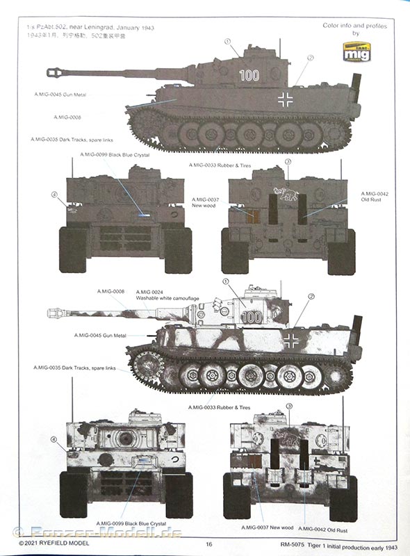 Am Ende der Bauanleitung sind 2 farbig gedruckte Farbprofile zur Bemalung und Markierung enthalten.