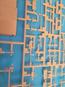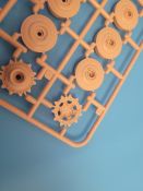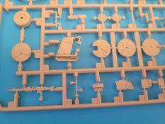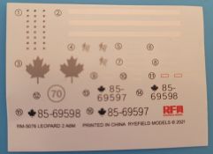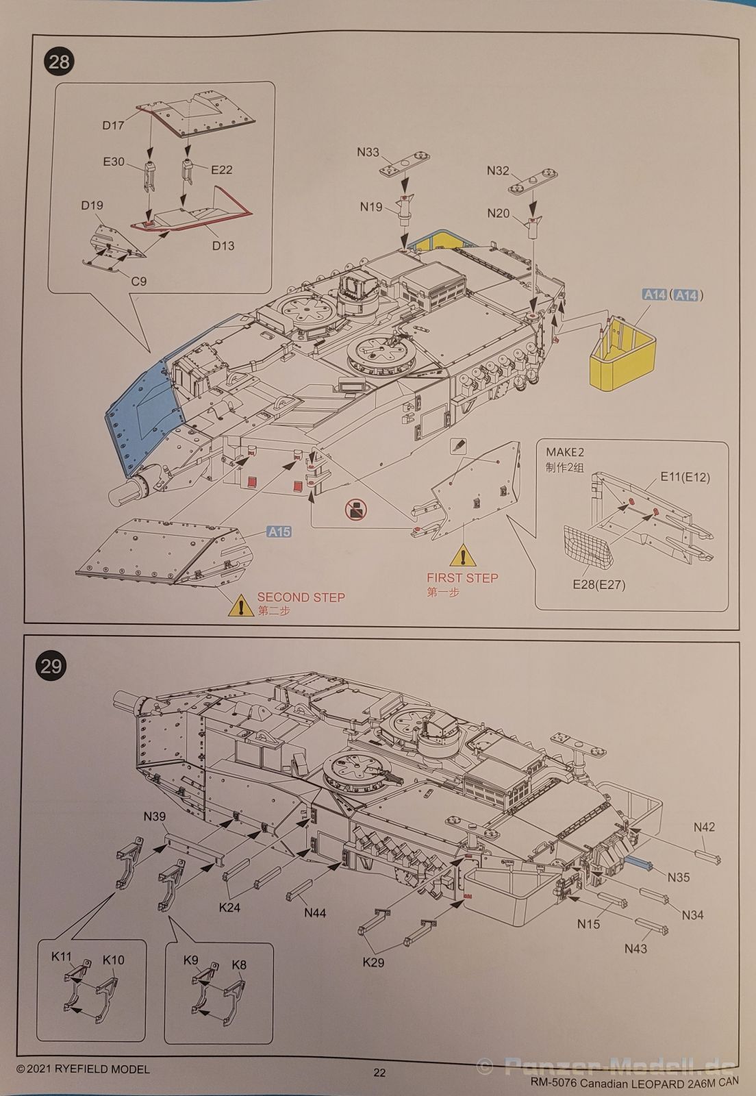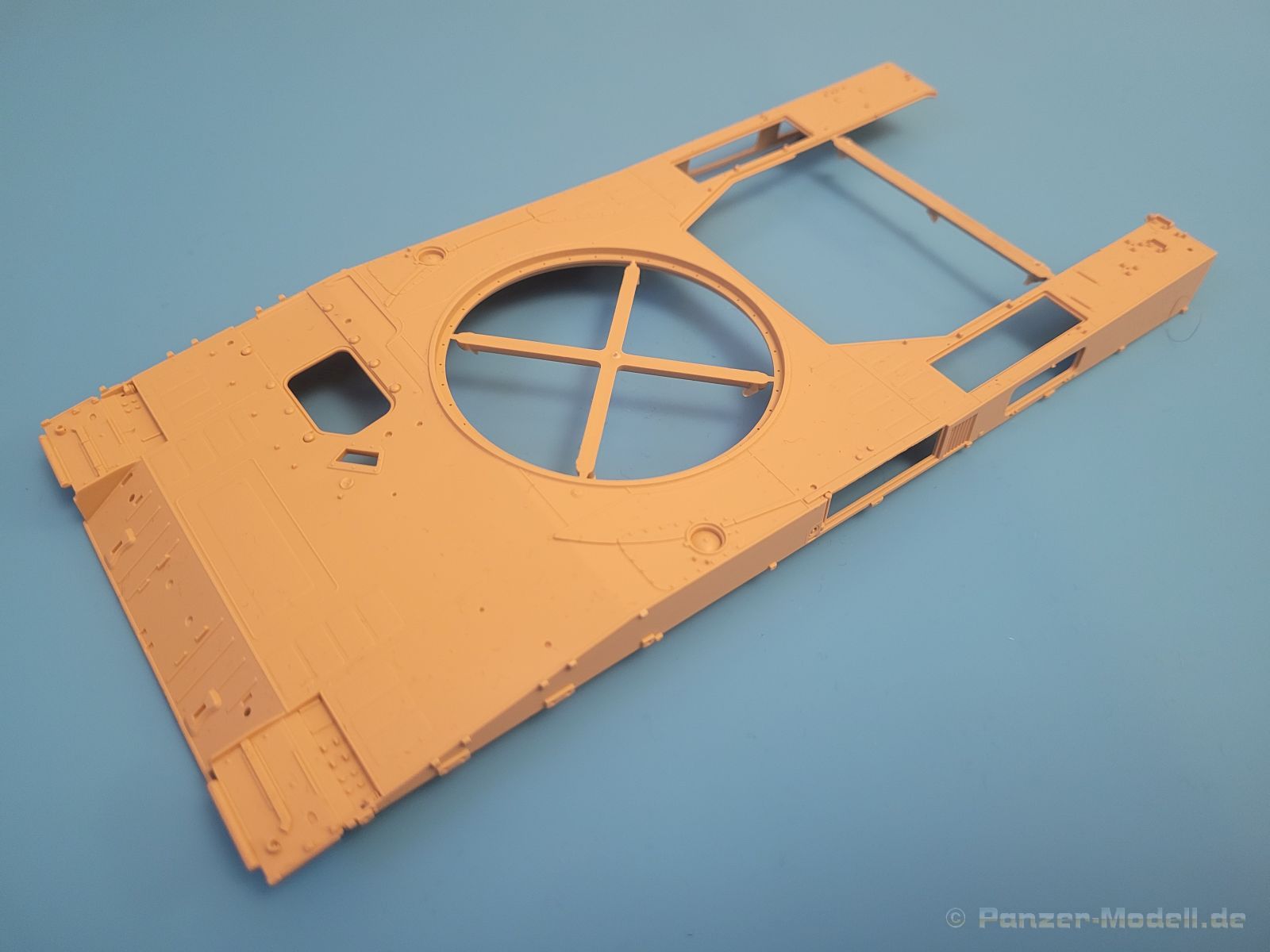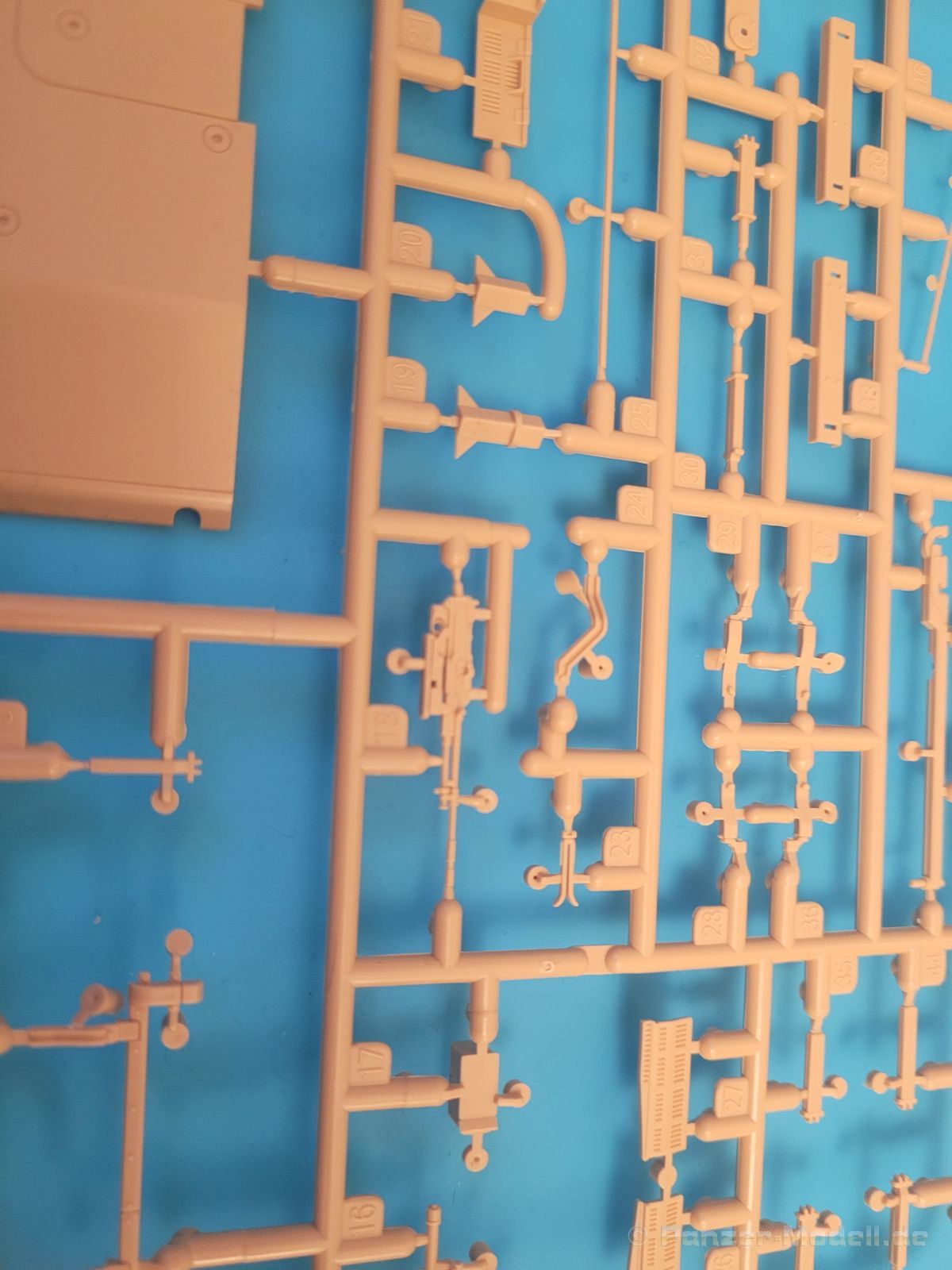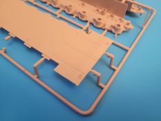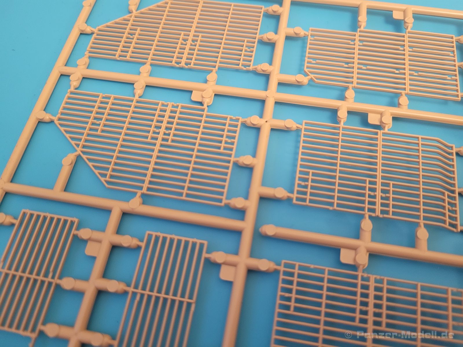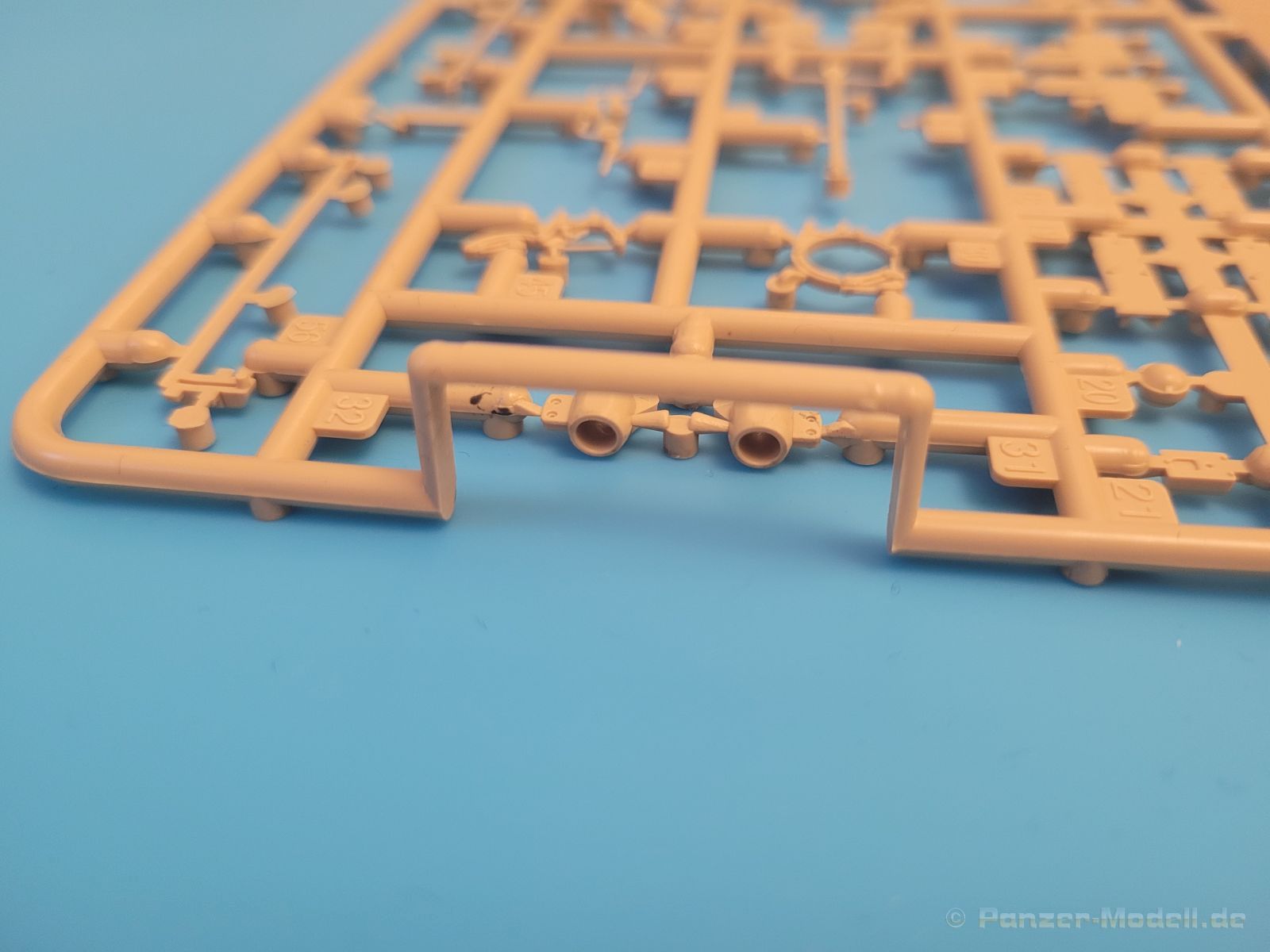 Der Leopard 2A6M CAN ist die kanadische Variante des Kampfpanzers mit Minenschutz Leopard 2A6M. Die ersten 20 Panzer dieser Variante wurden 20 von der deutschen Bundeswehr geliehen, um die Feuerkraft und den Schutz der im Süden Afghanistans operierenden kanadischen Truppen zu erhöhen. Die geliehenen Panzer trugen deutsche MG3 Maschinengewehre und erhielten eine SLAT Abstandspanzerung. Zum Modell: Beim Öffnen des stabilen Stülpkartons finden wir: - Sechzehn Spritzlinge in einem schönen beigen Plastik An den Spritzlingen sind augenscheinlich weder Fischhaut, Grat oder Sinkstellen zu finden, noch sind auffällige Auswerfermarken an später sichtbaren Stellen zu erkennen. Die Unterwanne setzt sich aus mehreren Teilen zusammen, was zum sauberen Arbeiten zwingt. Hier sollte man IMMER trockenanpassen, damit eine optimale Passung gewährleistet ist. An Ober- und Unterwanne sind sehr schöne gestaltete Schweißnähte nachgebildet, wie auch schon bei anderen Bausätzen dieser Marke mit die besten und filigransten welche es bisher in Spritzguss gab. Sämtliche Griffe an der Oberwanne, und davon gibt es viele, sind als Fotoätztele vorhanden. Wer mich kennt, weiß dass ich da sehr kritisch bin, hier frage ich mich nur: WARUM? Die einzelnen Schwingarme des Laufwerks befinden sich auf Drehstäben, diese werden in die Unterwanne eingesteckt und verklebt. Die Erfahrung zeigt, dass sich sich hier eine gute Federung ergibt. Die Laufrollen setzten sich aus den zwei Einzellaufrollen zusammen, welche in der Mitte ein Polycap erhalten. So bleiben auch die Laufrollen beweglich und können zur Bemalung abgenommen werden. Die Ketten befinden sich an drei eigenen Gussästen. Diese bestehen aus je zwei Bolzen mit angegossenen Endverbindern, welche in die Unterseite der einzelnen Kettenglieder gelegt werden, welche sich in einer Montagehilfe befinden. Dann wird das Oberteil des Kettengliedes mit wenig Klebstoff auf das Unterteil geklebt und die Kette bleibt beweglich. Ein recht einfaches, aber effektives System, jedoch ist sauberes Arbeiten hier Pflicht. Für jede Seite werden Dreiundachtzig Kettenglieder benötigt, somit macht der Kettenbau einen Großteil der Arbeit an diesem Bausatz aus. Die SLAT Panzerung macht für Plastikspritzguss einen hervorragenden Eindruck. Der Vergleich mit den vorliegenden Fotos zeigt, das diese fast auf dem Punkt ist. Hier geht es nur noch mit Fotoätzteilen feiner. Der Turm wird mit vielen fein detaillierten Anbauteilen verfeinert, und viele spezielle kanadische Anbauteile werten das Modell auf (Dazu mehr in den Bemerkungen). Die Kanone ist für mich ein Highlight, diese bleibt dank der Polycaps in der Höhe beweglich. Das Rohr wird aus Plastikteilen, einem kleinen Fotoätzteil zusammengebaut und einer fein in 3D gedruckten Mündung zusammengesetzt. Das Ergebnis sieht absolut überzeugend aus, zumal der Rauchabsauger eine realistische Oberflächenstruktur aufweist. Die klar strukturierte Bauanleitung führt in nur fünfunddreißig Schritten zum fertigen Modell und ist nicht überladen. Als Markierungsvarianten steht ein Fahrzeug zur Auswahl. 2007/ 2010 Kandahar Provinz/ Afghanistan, 3rd Canadian Division, 1st Canadian Mechanized Brigade Group, Lord Strathcona's Horse (Royal Canadians)