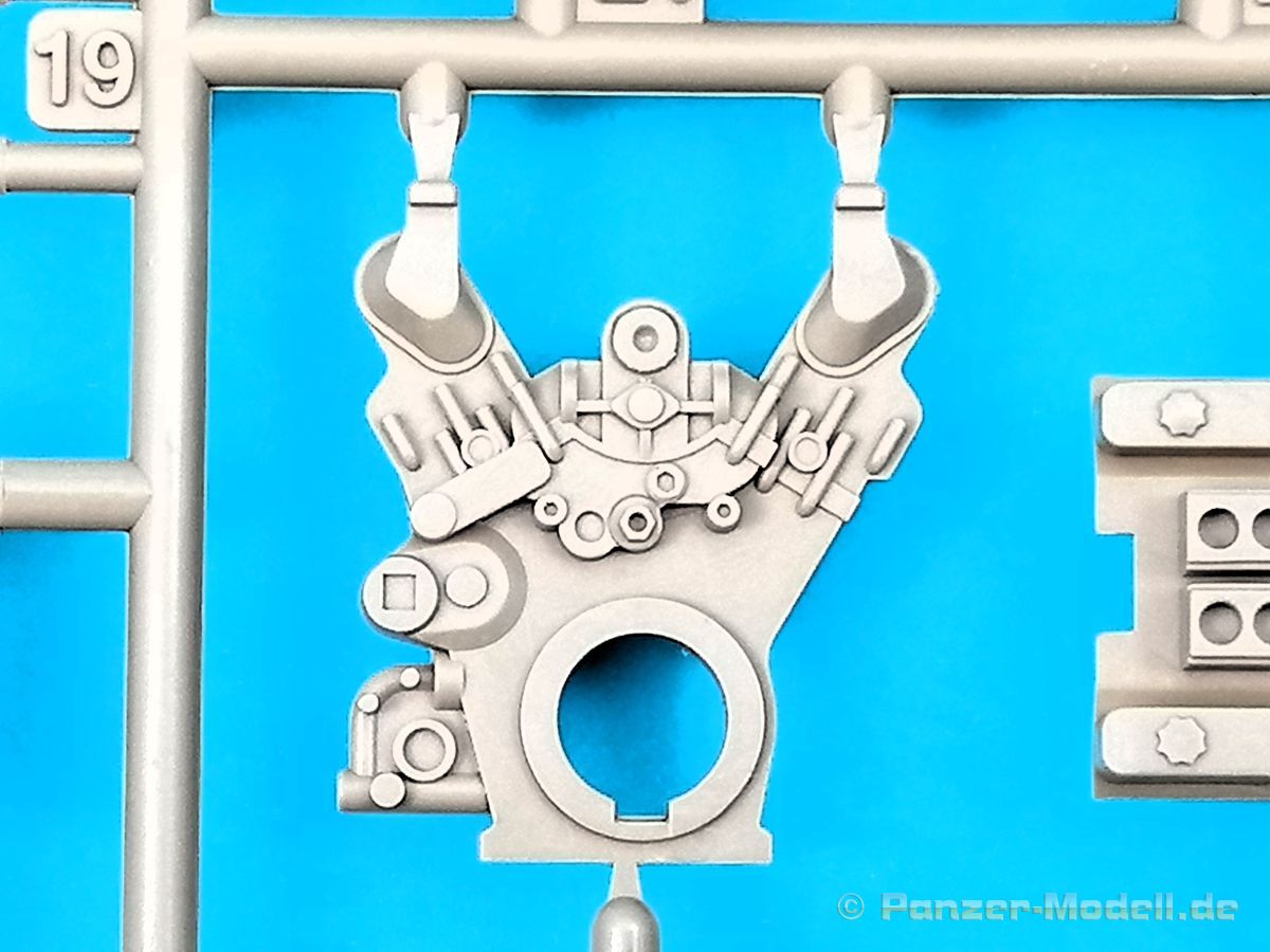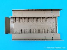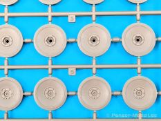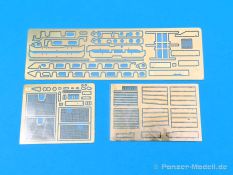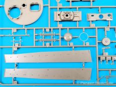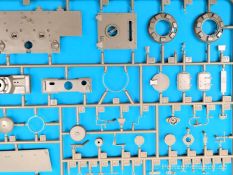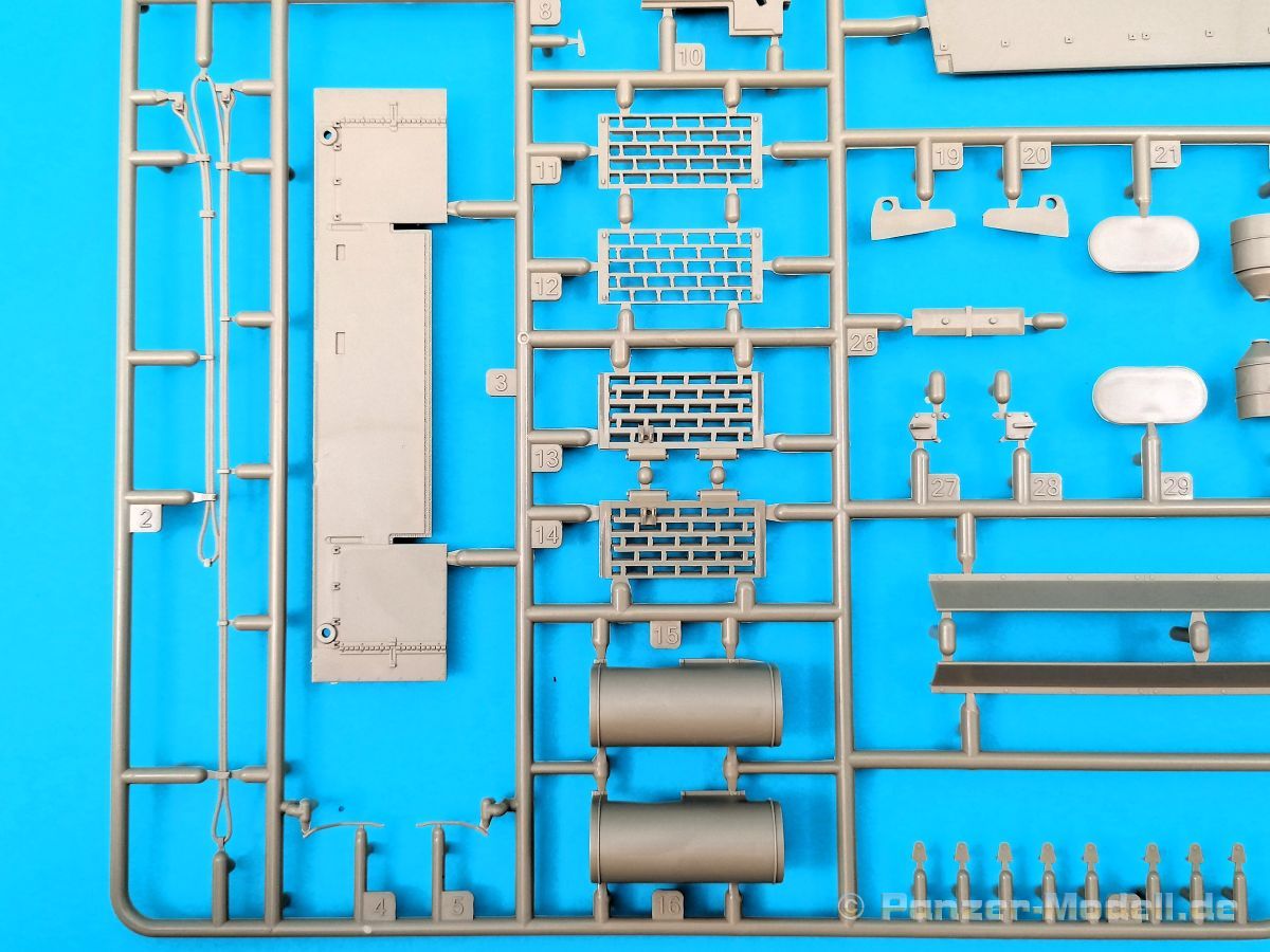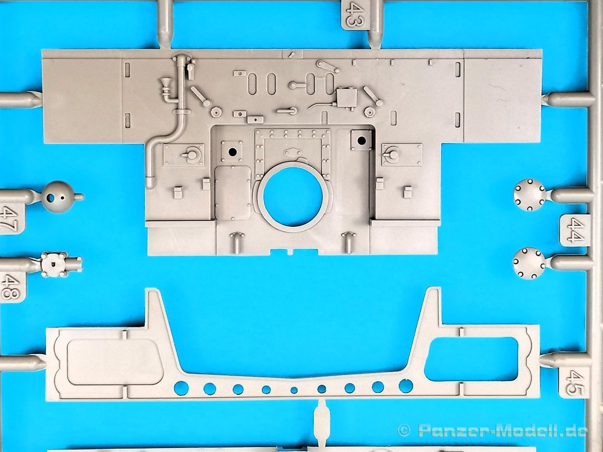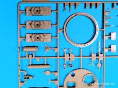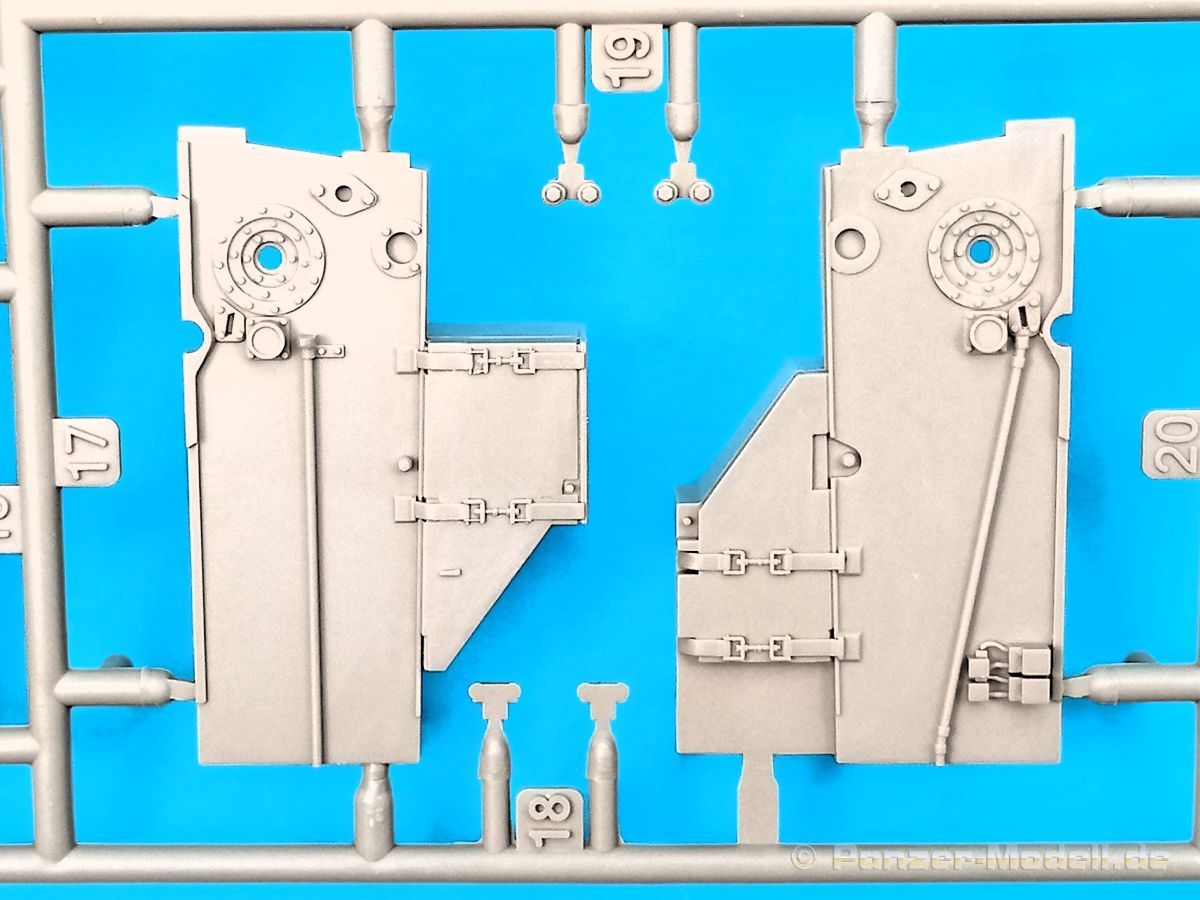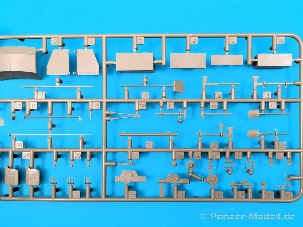 Mit dem 100sten Kit hat uns RFM mit einem weiteren Tiger I beglückt. Noch ein Tiger? Richtig, aber dieser Bausatz hat es in sich. In dem voluminösen Karton (38 x 24 x 15 cm) finden sich Bauteile für den Bau eines “normalen” Tigers oder den Bau eines Schnittmodells das in dieser Art in einigen Museen anzutreffen ist. Alles garniert mit einer Inneneinrichtung. Inwieweit der geneigte Modellbauer die Inneneinrichtung bei der “normalen” Bauweise verbaut, muß jeder für sich selbst entscheiden. Macht für mich keinen Sinn, da davon hinterher so gut wie nichts zu sehen ist, außer Teile durch evtl. geöffnete Luken. Zwingend notwendig aber beim Schnittmodell. 23 Rahmen, Klarsichtteile, Einzelgliederketten, drei Ätzteilbögen, ein Metallkabel und ein Decalbogen kommen nach dem Öffnen des Kartons zum Vorschein. Dazu die Bauanleitung, die sich mit 40 Seiten im Format DIN A4 schon als kleines Heftchen zeigt. Bereits der erste prüfende Blick zeigt Spritzguß auf der Höhe der Zeit. Auf den angenehm in einem sandgelben Ton eingefärbten Teilen zeigen sich keine Auswerfer in den sichtbaren Bereichen, geschweige von vorhandenem Flash oder Formenversatz. Auch Sinkstellen waren keine auszumachen. Die Schärfe und die Details der Bauteile lassen richtig Freude aufkommen. Bolzen, Schweißnähte etc. können überzeugen. Gleiches gilt auch für allerfeinste Teile wie z.B. Leitungen. Diese Kriterien gelten im allgemeinen für den Außenbereich ebenso wie für die Inneneinrichtung. Selbstverständlich liegen für den Bau des Schnittmodells alle Bauteile alternativ vor. Das Deckblatt der Bauanleitung beinhaltet neben der Wiedergabe des Deckelbilds die üblichen Piktogramme und Warnhinweise. Die folgenden drei Seiten sind für die Darstellung der Spritzlinge mit den Bauteilen in der gewohnten Manier ausgelegt. Ebenfalls vorhanden und aufgeführt sind alle Optionsteile. Erst auf Seite fünf startet der eigentliche Bau des Panzers bei dem sich der geneigte Modellbauer entscheiden muß welche Variante er bauen will. Hier kommt auch der erste Hinweis zum Bau des Schnittmodells bei dem viele Zeichnungen in Grün gehalten sind. Blau hinterlegt sind häufig bereits eingebaute Teile und auch Klebestellen in Rot gekennzeichnet. Im Prinzip fängt der Bau klassisch mit ausgewählten Unterwanne an der die Komponenten des Laufwerks montiert werden. Um die Schwingarme beweglich zu machen ist lediglich ein kleines Nupsi zu entfernen. Zum Einbau kommen anschließend Stoßdämpfer, Fahrer- und Beifahrersitz und viele weitere Kleinteile. Den größten Brocken machen die Konsole mit den Instrumenten und die ansprechend gestaltete Getriebeeinheit aus. Etwas aufwändig dürften sich die Granathalterungen anlassen die mit einzelnen unterschiedlichen Granaten gefüllt werden. Die Granaten werden mit jeweils drei Decals bestückt. Schränke und weiter Kleinteile wie z.B. die Munitionssäcke für die MGs finden ebenfalls ihren Platz. Der Einbau des Brandschotts zum Motor schließt die Montage des vorderen Bereichs ab. Über sieben Abschnitte zieht sich anschließend der Bau des Motors mit allen Anbauteilen und Aggregaten hin. Auch hier Bauteile, die mit einer tollen Detailtreue aufwarten. Abschluß findet sich mit der Montage des Heckblechs mit seinen Anbauteilen. Ab Baustufe 26 ist erhöhte Aufmersamkeit geboten da hier die Optionen für das Schnittmodell mit aufgeführt werden. In erster Linie beschäftigen sich die Abschnitte mit den “Schuhen” und deren Montage. Etwas aufwändig ist der Bau der Kettentrümmer da die Führungszähne einzeln aufgeklebt werden. Mit den zugehörigen Pins kann die Beweglichkeit der Kette erhalten bleiben. Im Anschluß erfolgt die Montage des Decks mit weiteren Ausrüstungsgegenständen. Wenn hier alles “verbraten” ist folgt letztendlich der Bau des Turmes. Auch in diesem Fall werden detailreiche Teile verbaut. Alles scheinbar vollständig. Angefangen von der 8,8cm mit Laffetierung bis hin zu Handrädern, Sitzen, Kanistern und weiteren Bauteilen… Um auf alles einzugehen ist nicht möglich da das Gesamtpaket einfach zu umfangreich ist. Die Anleitung ist recht gut aufgebaut. In den einzelnen Abschnitten sind Hinweise zu finden wenn z.B. Löcher gebohrt werden müssen. Ebenfalls finden sich kleine Graphiken wenn z.B. Baugruppen zusammengeführt werden, die dann in das Gesamtkonstrukt eingebaut werden. Daneben sind auch weitere Graphiken, teilweise farbig vorhanden, die den jeweiligen Bauabschnitt in einer Gesamtansicht darstellen. Dazu ein Hinweis in eigener Sache: Alle Bauteile sollten im Vorfeld vor Einbau bemalt und gealtert werden. Eine nachträgliche Kolorierung ist etwas schwieriger und zudem nervig. Wo viel Licht ist aber auch Schatten… Negativ macht sich das fehlen eines Zimmerits bemerkbar – sehr schade. Eigenregie ist eventuell angesagt, außer man wird im After-Market-Bereich fündig, z.B. bei ATAK. Nicht zielführend ist auch die Tatsache das in der Anleitung keinerlei Farbangaben zu den einzelnen Teilen zu finden sind. Allerdings sollte das für die “alten Hasen” unter uns kein Problem darstellen. Verwiesen wird u.a. auf Publikationen von AMIG und weiteren Büchern sowie dem Internet. Leider werden keine Farbhersteller mit einer Legende gelistet. Lediglich in den Bemalungsvorschlägen tauchen Farbnummern auf die auf das Sortiment von Mr. Hobby hinweisen. Zumindest in diesem Fall kann der Modellbauer auf Farben von anderen Herstellern einen Rückschluß ziehen. Auf insgesamt vier Seiten stellt uns RFM acht Bemalungsvorschläge zur Verfügung. Interessanterweise nur in einer Drei-Seiten Ansicht. Schade! Hinweise in welchen Abteilungen der Panzer fuhr sind vorhanden. Ort und Zeitpunkt sind ebenfalls deklariert. Diese Angaben fehlen lediglich bei dem vorletzten Bemalungsvorschlag. Die dem Kit beiliegenden Decals sind ohne Tadel gedruckt und können überzeugen. Ohne die Schattenseiten überzubewerten haben wir einen schönen und überzeugenden Bausatz vor uns liegen.