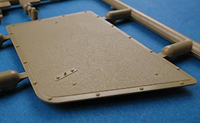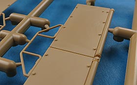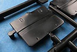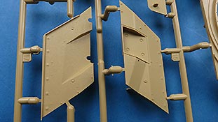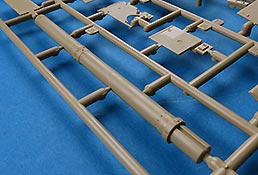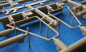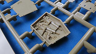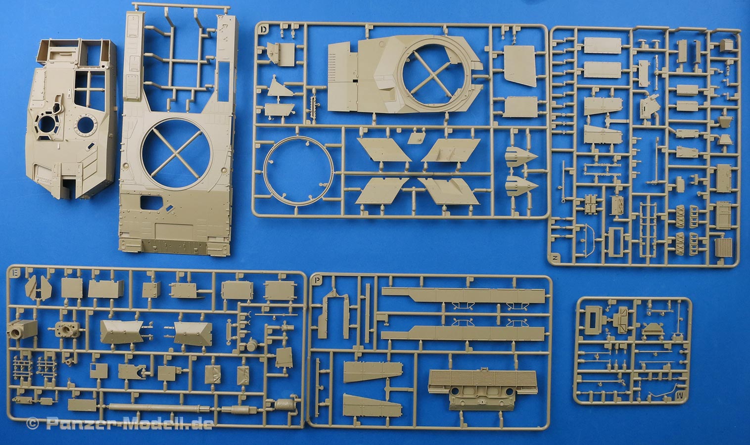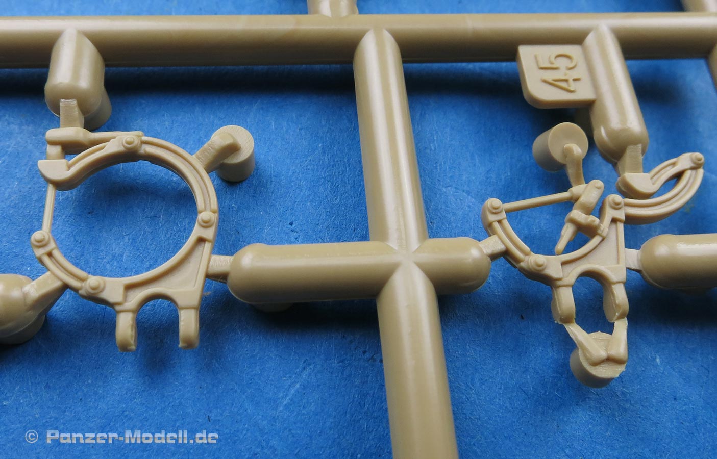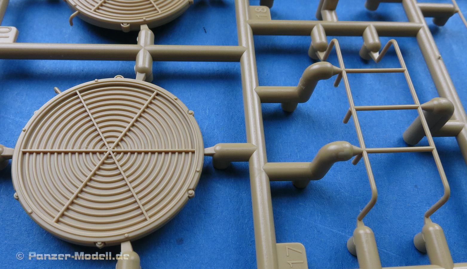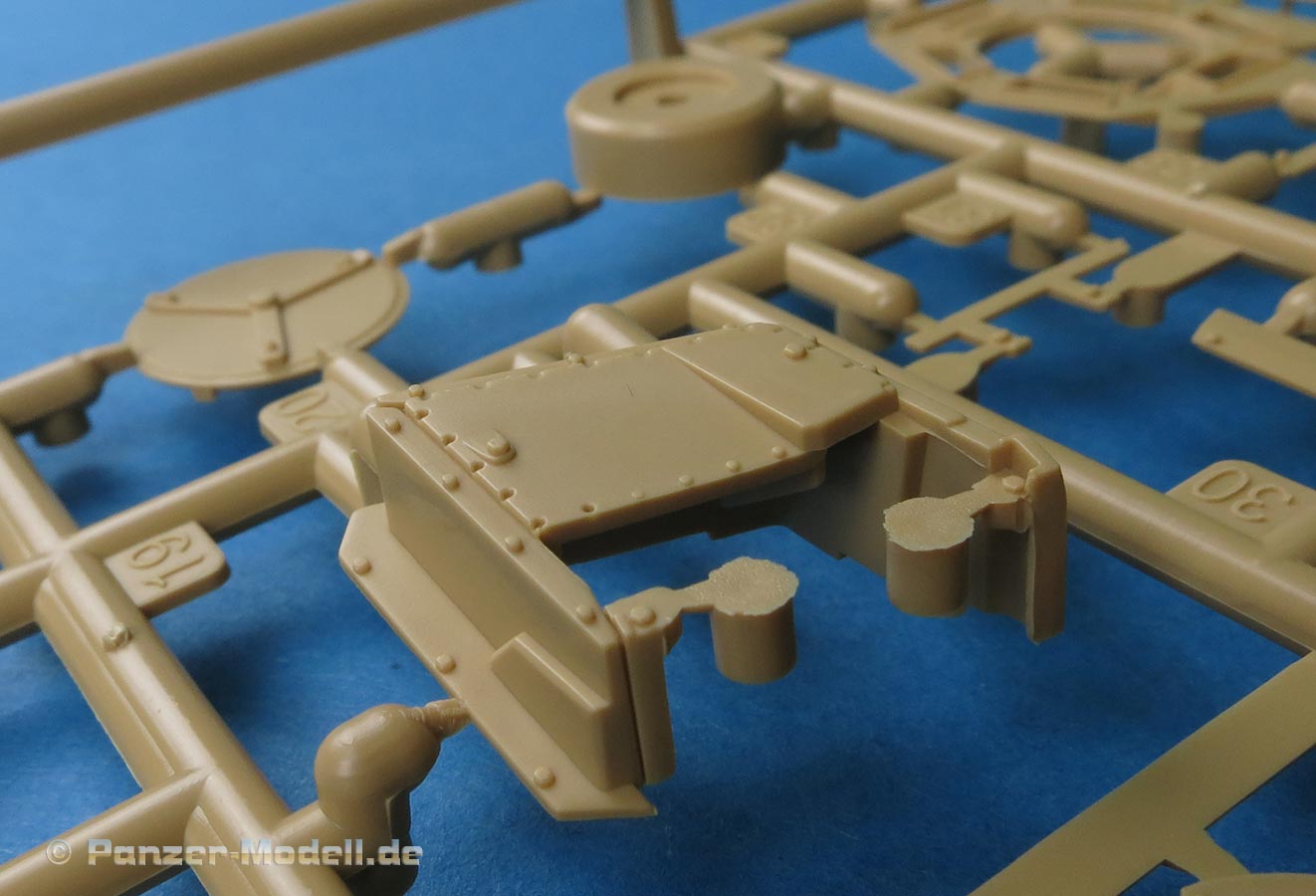Bei grober Durchsicht der Teile stellt man erfreut wieder eine sehr hohe Qualität der Spritzgussteile fest mit feinen und scharfen Details, wenig störenden Auswerfermarken und keine Fischhaut, Sinkstellen oder Formversätze.