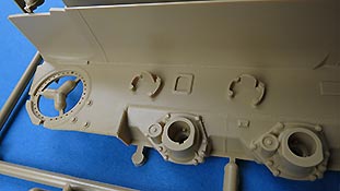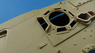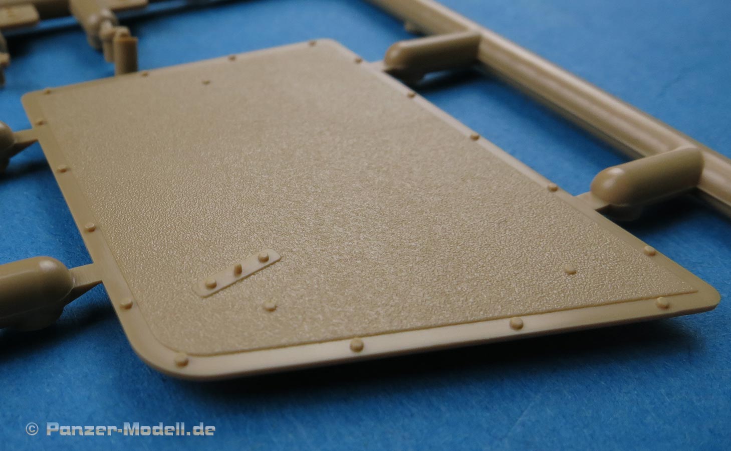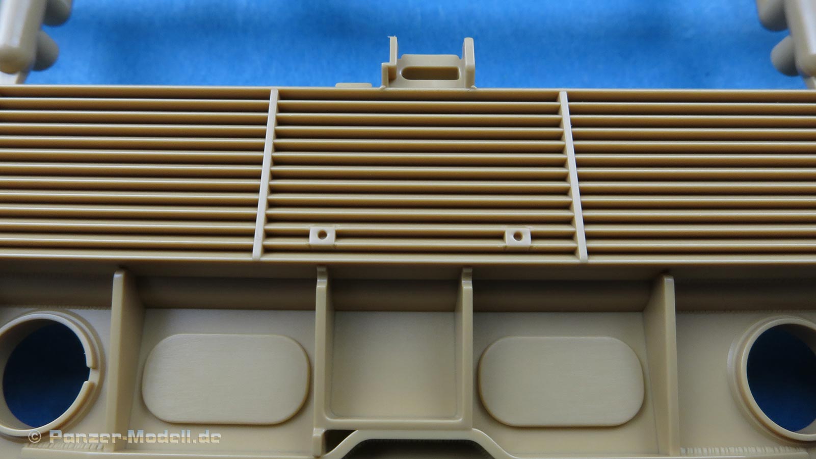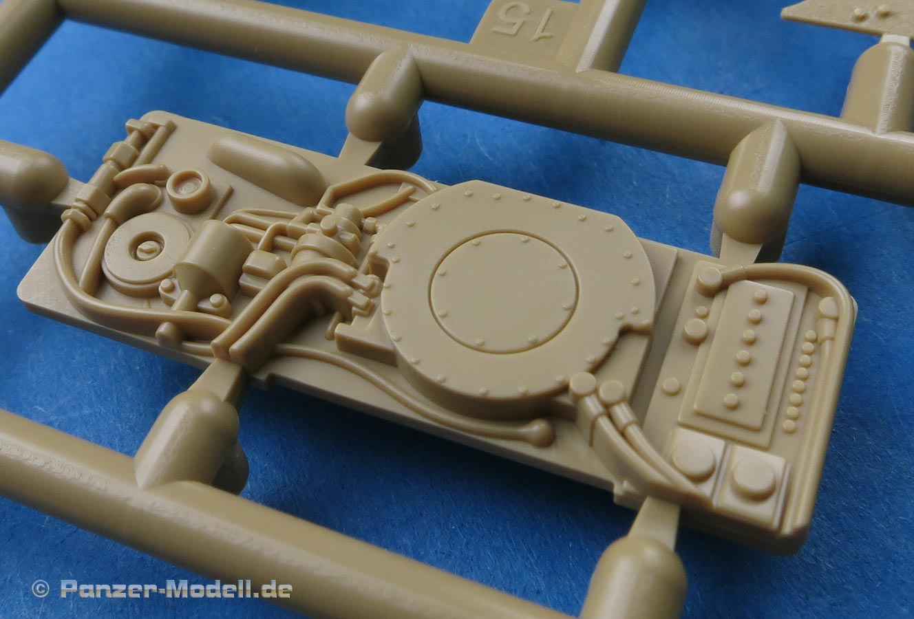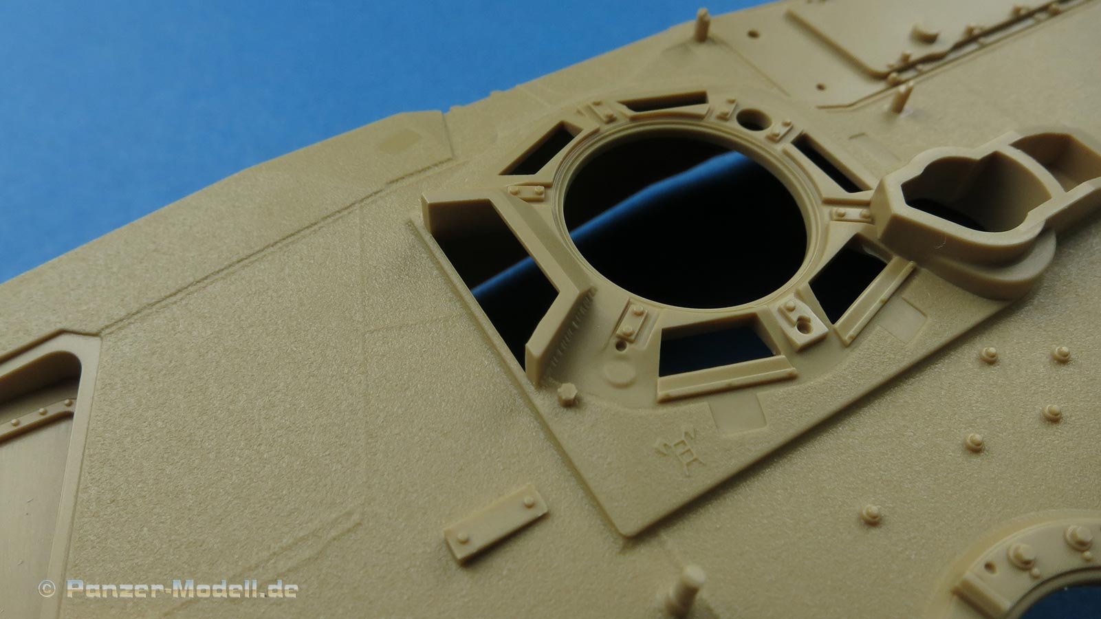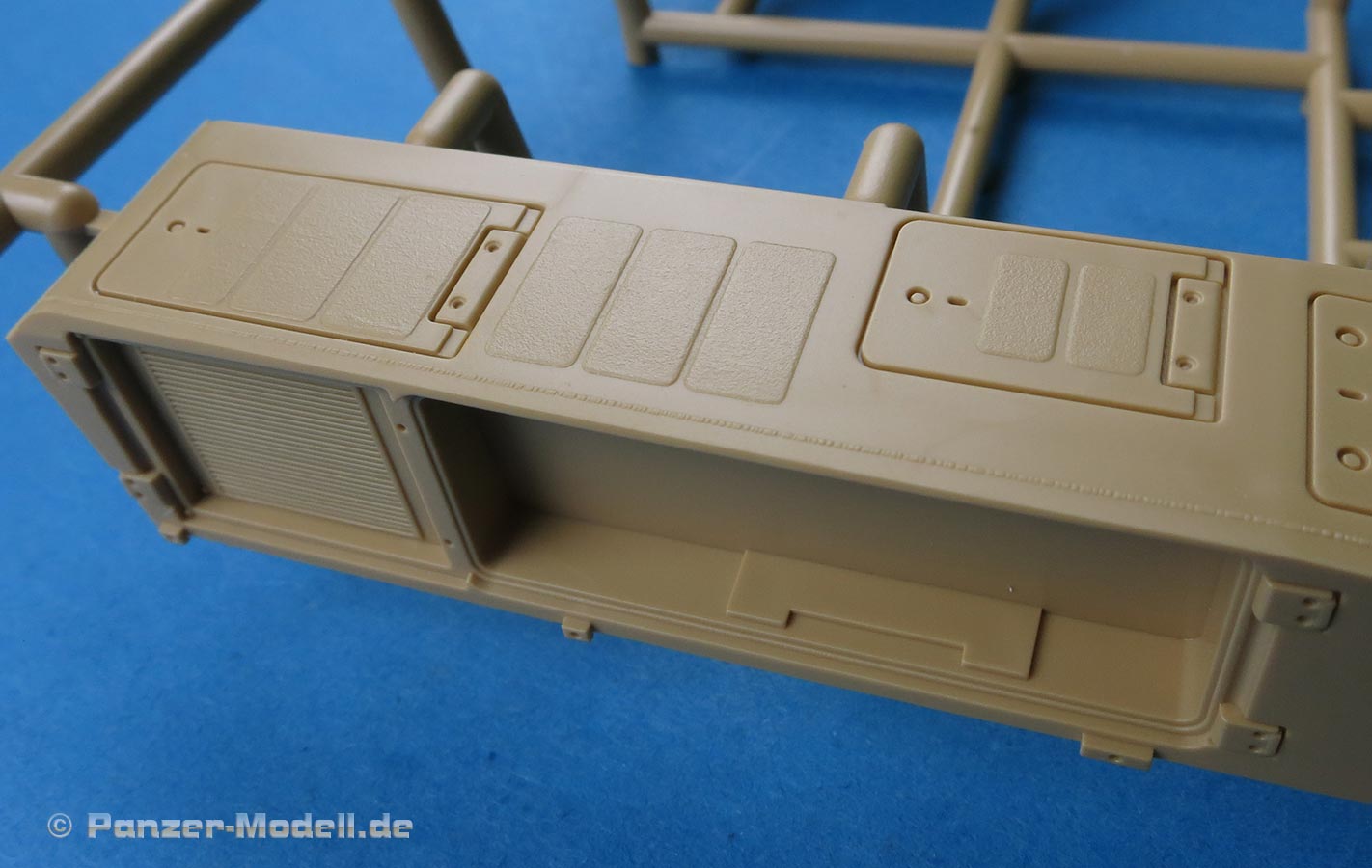 Die Wannenheckwand weist auch die neuen Details des A7 auf und auch hier findet sich z.B. die neue Box des Infanterietelefons und die Luke lässt sich auch offen oder geschlossen bauen denn es gibt auch hier Innendetails zu sehen.