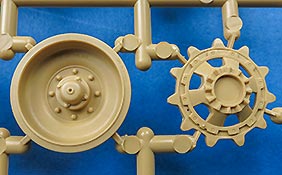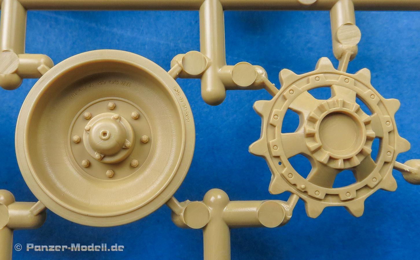 Alle Laufrollen, wie auch Treib- und Leiträder bleiben durch Polycaps drehbar - was zum einen für die Bemalung und das Kettenaufziehen von Vorteil ist, im Prinzip ist damit das Laufwerk komplett in allen Eigenschaften voll funktionsfähig.