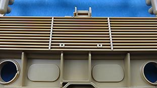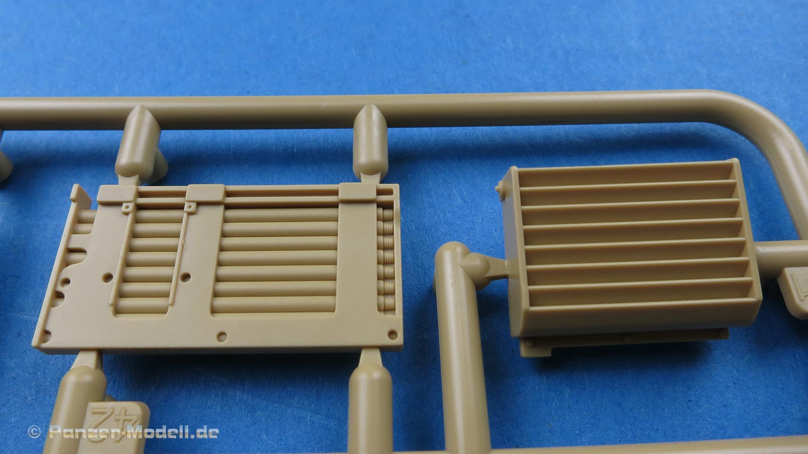 Die neuen seitlichen Staukörbe setzen sich wie gewohnt aus dem Spritzgussgerüst zusammen und werden mit sehr fein geätzten Lochblechen aus PE vollendet.