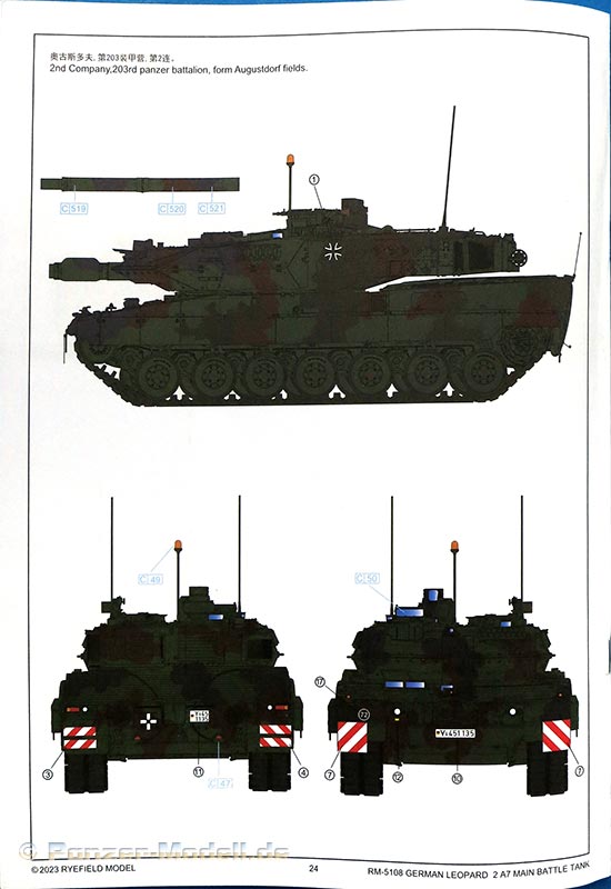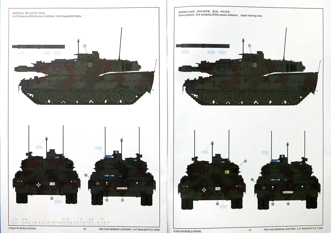 Am Ende der Bauanleitung gibt es einige farbig gedruckte Seiten mit 3 Farbprofilen zur Bemalung und Markierung.