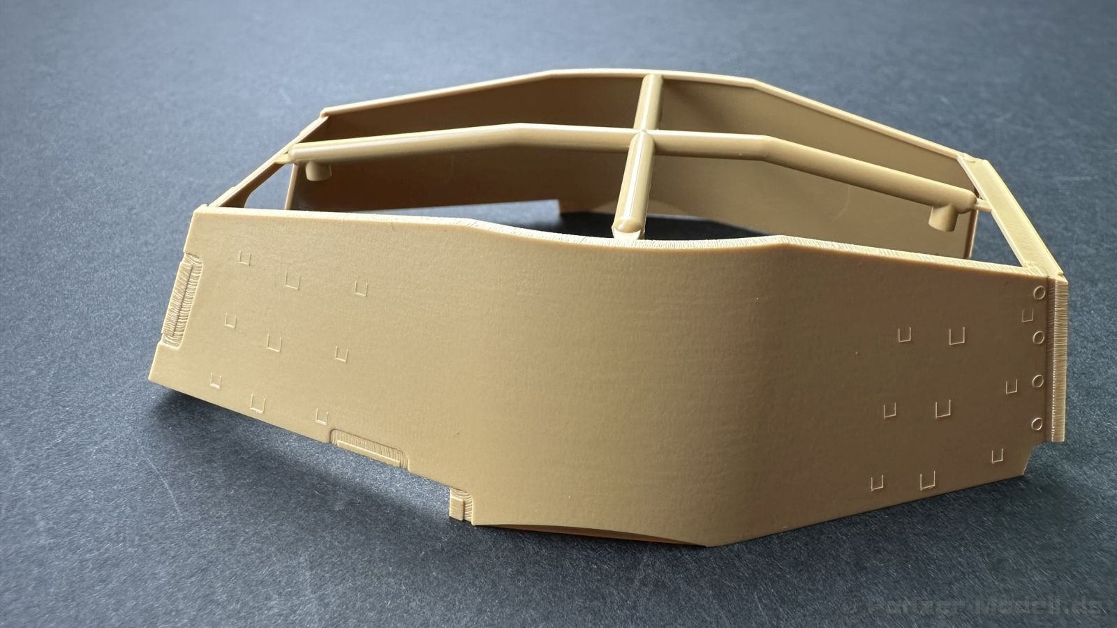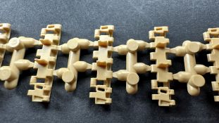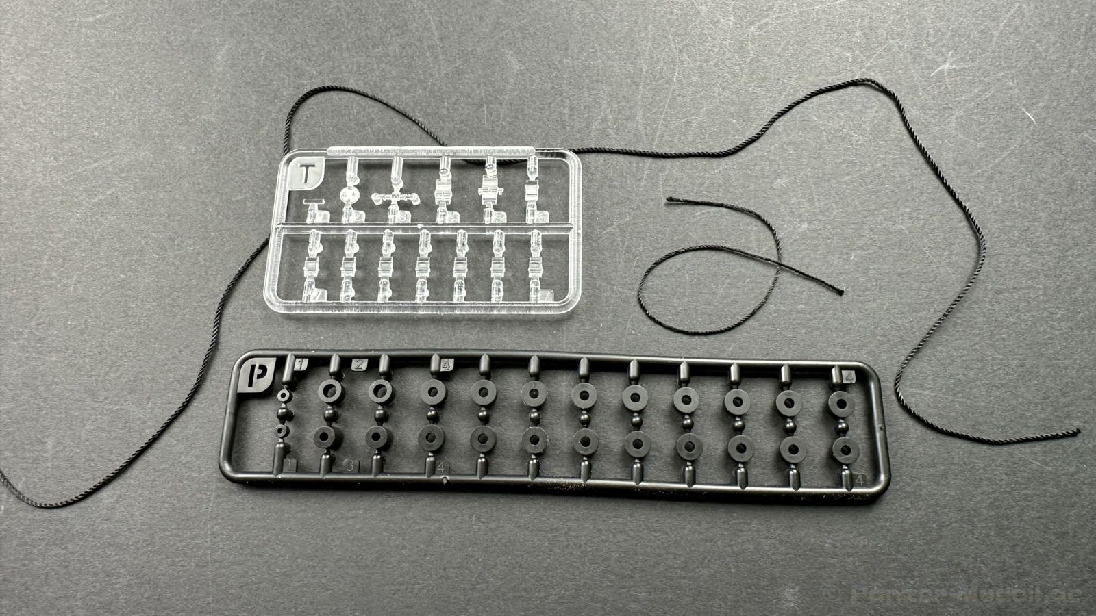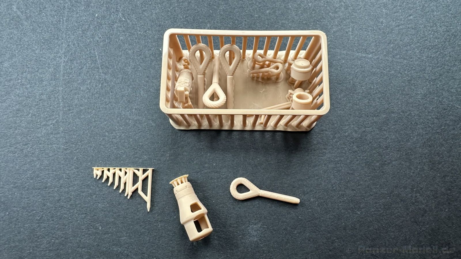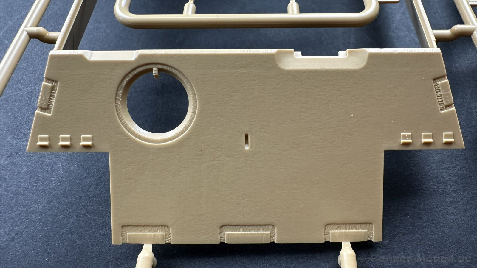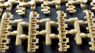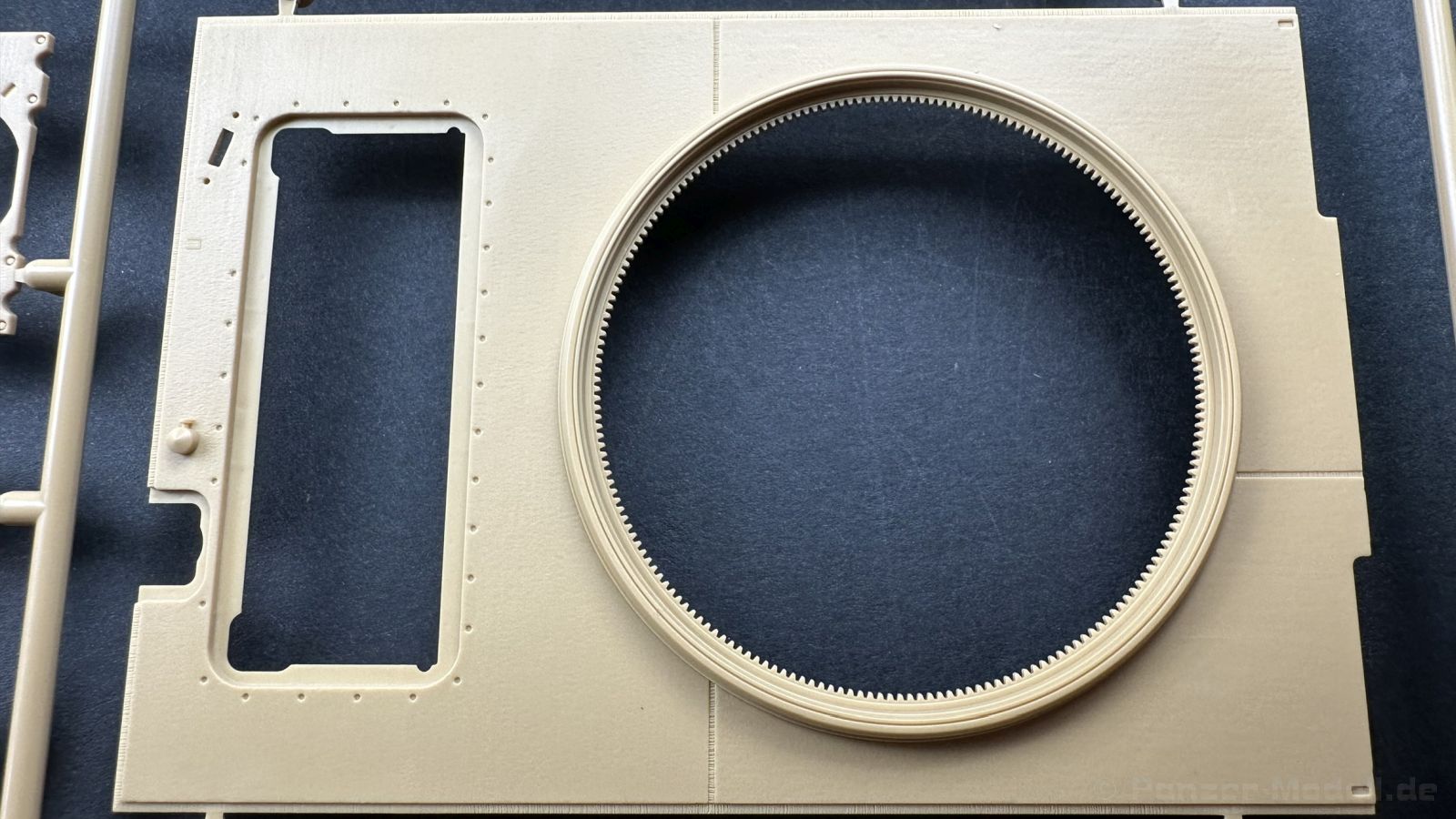 Der gleiche Grundbausatz wird auch noch in einer „Standard“ Version angeboten. Beide Versionen stellen ein sehr spätes Baulos der Tigers II oder Ausf. B dar, der ohne Zimmerit daherkommt. Was die Upgrade Version von der Standardversion unterscheidet liste ich euch auf: - Zusätzlicher umfangreicher Ätzteilebogen wie z.B. für Lampenumfassung, Lüfterschutz, Werkzeughalterungen - 3D gedruckte Bauteile für Mündungsbremse, Lampe, Kauschen, Feuerlöscher - Gedrehtes Alurohr (hier liegt nochmals eine 3D gedruckte Mündungsbremse dabei) - Bewegliche Einzelgliederkette - Antriebsräder in Einzelteilen; 4 verschiedene Zahnkranztypen - Seitenschürzen in einzelnen Segmenten Sowie in der 1. Auflage des Upgrade Bausatzes 4 gedrehte Metallgranaten als Goodie. Eine ganze Menge Zubehör, für die man einzeln bestimmt zwischen 25-30 Euro mehr ausgeben müsste, wenn man alles dazu kaufen würde. Die restliche oder Grundausstattung umfasst folgendes: - 9 Spritzlinge in beige - Vinylcaps - Seilmaterial für Abschleppseile inkl. Hilfsseil - 1x Spritzling in durchsichtigen Kunststoff - 1x Decalbogen. - 1x Metallfeder - 1x Ätzteilbogen Die Anleitung ist mehrfarbig gedruckt und sollte, laut meiner Durchsicht keinerlei Probleme bereiten. Besonderheiten oder schwierige Abschnitte / Bauteile sind farblich dargestellt. Insgesamt 31 Baustufen gibt es zu bewältigen. Die Bauteile kommen in dem üblichen Beigen/Dunkelgelben relativ weichen Kunststoff daher, der für Rye Field so typisch ist. Die Bauteile machen auf den ersten Blick einen spitzen Eindruck, kein Versatz, Einschlüsse oder sichtbare Fischhaut. Neben der wirklich feinen Detaillierung und den Gravuren verfügt der Bausatz bzw. die Bauteile über eine unglaubliche Tiefenschärfe, im englischen auch Crisp genannt. Der eigentliche Bau startet traditionell mit der Unterwanne, hier müssen die Seitenteile der „Inneneinrichtung“ links und Rechts verklebt werden, anschließend erfolgt die Montage der Schwingarme, diese sollen bei sparsamstem Einsatz mit Kleber beweglich bleiben. Leider sind die Schwingarme 2-teilig ausgeführt, was für zusätzliche Arbeit sorgt. Viele der Bauteile sind, anders als bei der Standardversion mit Ätzteilen versehen, sorgt einerseits für mehr Detaillierung, aber auch für einen nicht zu unterschätzenden Mehraufwand, als Beispiel sei hier die Halterung für das Marschkolonenlicht genannt. Interessanterweise liegt eine Motorentrennwand zum Kampfraum und für links und rechts dabei, ob wir hier noch eine Variante mit Inneneinrichtung erwarten dürfen? Die Montage der Werkzeuge auf dem Oberteil umfasst wieder viele Ätzteile, wie Halterungen, Schaufelblatt usw. Das Abschleppseil liegt als gedrehtes Seil dabei um macht einen guten Eindruck. Die Einzelgliederketten, werden in eine Lehre gelegt und mittels Bolzen verbunden, die dann abgetrennt werden müssen vom Spritzling. Es wird in der Anleitung angegeben das kein Kleber benötigt wird, ich freue mich schon das selbst testen zu dürfen! Die Motorenklappe kann offen oder geschlossen dargestellt werden, gleiches gilt für sämtliche Luken. Erfreulich das die Schürzen einzeln montierbar sind, das erlaubt dem Modellbauer sein Modell nach Belieben anpassen zu können. Die Kanone kann mit dem Verschlussstück gebaut werden, leider sieht man davon später nichts mehr. Der mehrteilige Turm ist ein wahrer Bausatz im Bausatz, so besteht der Turm aus 2 Teilen, einem separaten Dach, der Front (die auch aus 2 Stck. besteht und natürlich den gesamten Anbauteilen. Allein die Kommandantenkuppel besteht aus nicht weniger als 30 Bauteilen OHNE das MG zum Fliegerbeschuss! Ein nettes Gimnick für das Kanonenrohr ist eine beiliegende Metallfeder die einen Rückstoß simulieren kann oder soll, leider muss dabei recht viel Kraft aufgewendet werden. Für die Blende liegen 2 Ausführungen mit dabei, leider geht RFM nicht auf die unterschiede der Blenden ein, bzw. ordnet die Blenden keiner Decalvariante zu, hier heißt es – selber recherchieren Ich persönlich finde sowas doof – ein Hersteller legt Varianten bei, lässt aber den Kunden völlig im dunklen tappen für welchen Produktion Zeitraum oder Decalvariante welches Bauteil ist. Rye Field spendiert uns insgesamt 4 Decalvarianten, die sich wie folgt gliedern: - s.SS. Pz.Abt. 503, 2nd Company, Danzig, Germany April 1945 in 3-Farb Hinterhalttarnung In meinen Augen haben wir hier einen der besten Königstiger, den ich bisher sehen dürfte. Das wird aber leider durch viele kleinteilige Bauteile, Ätzteilorgien und eine Einzelgliederkette erkauft, die ich gerne durch die Segmentkette aus dem Standardbausatz ersetzt hätte. Für insgesamt 55 Euro die der Bausatz, Stand 11/2024 kostet ist das Preis-Leistungsniveau hervorragend, wie ich Eingangs schon geschrieben habe, alleine die zusätzlichen Bauteile, die in der Upgraded Version enthalten sind, rechtfertig den Kauf! Wer hätte das nach den ganzen guten und goldenen Jahren gedacht, das es die Hersteller immer wieder schaffen dem geneigeten Modellbauer ein Lächeln auf die Lippen zu Zaubern