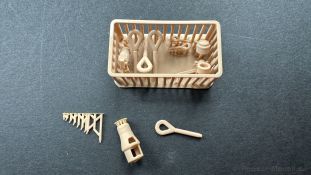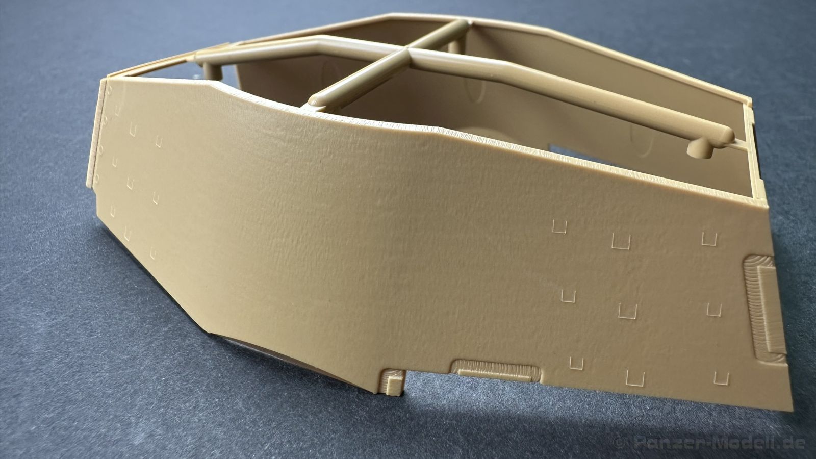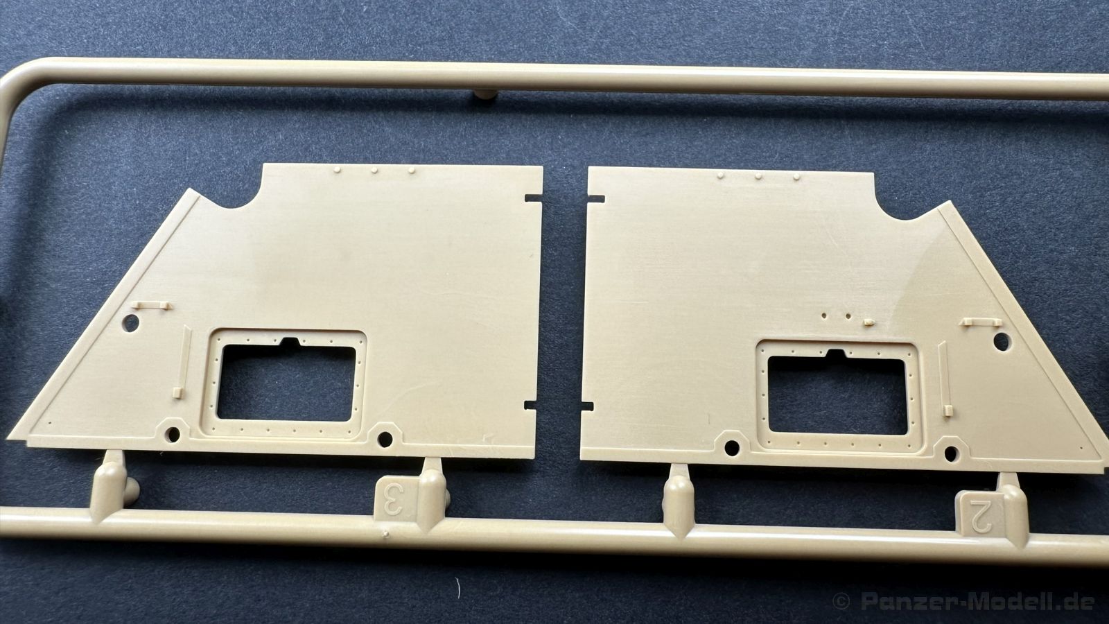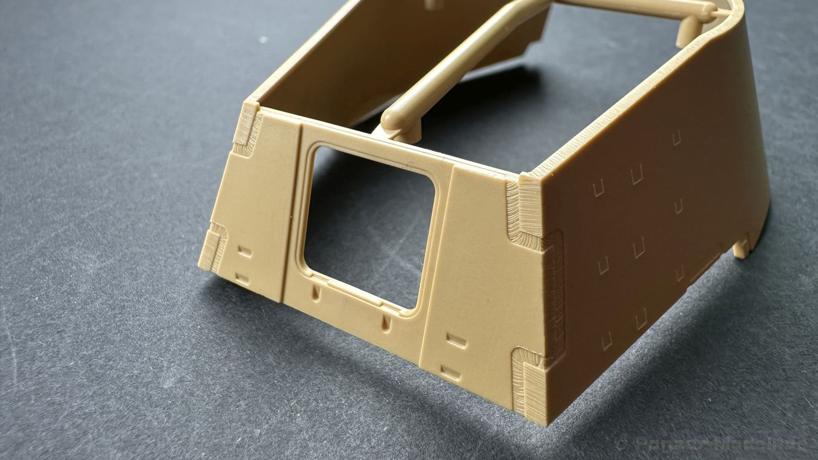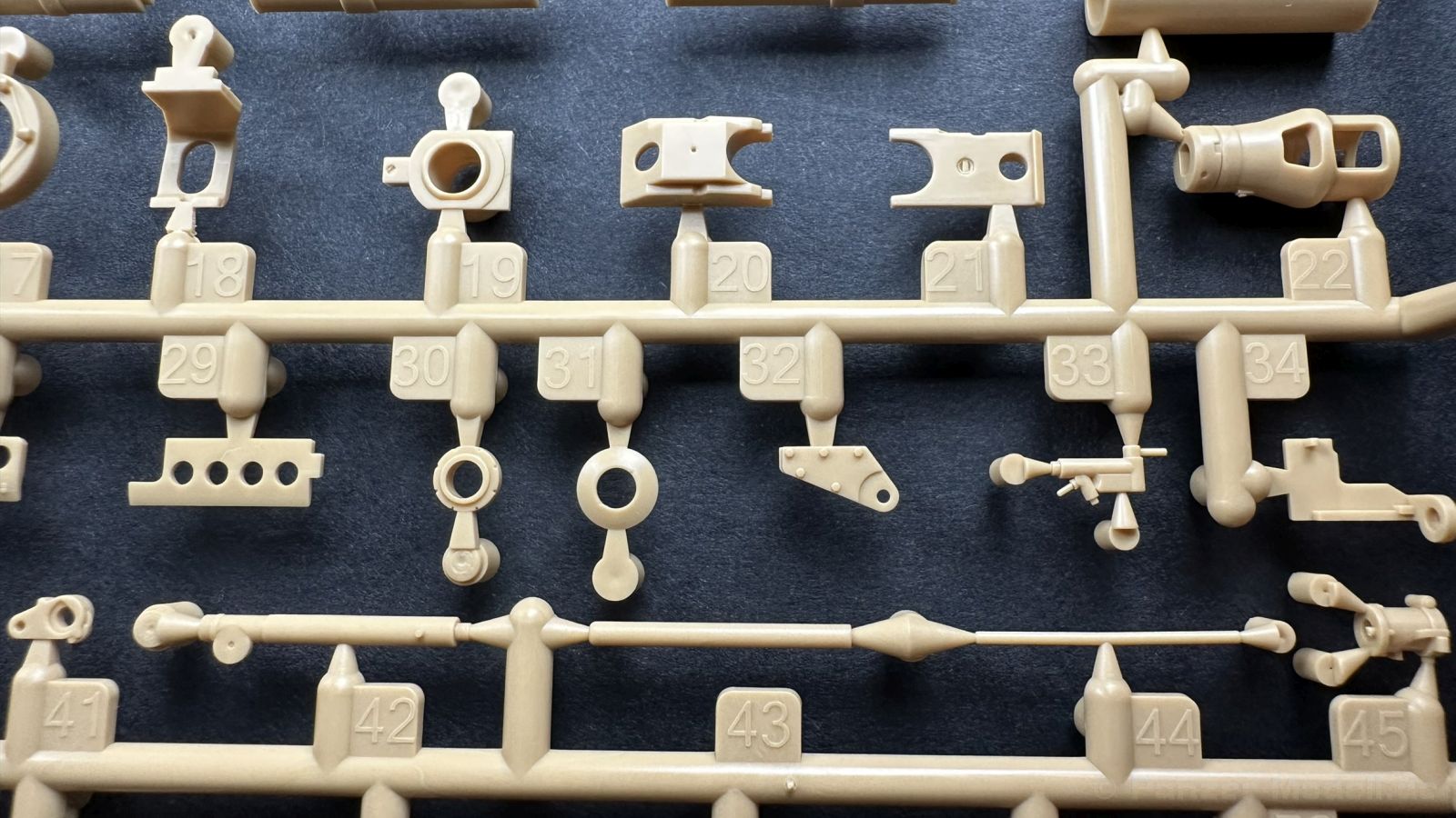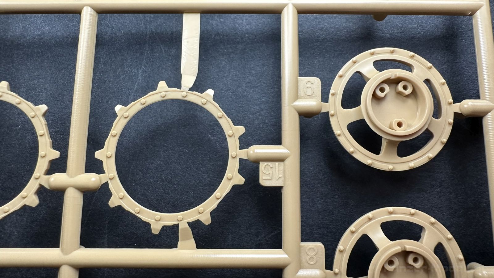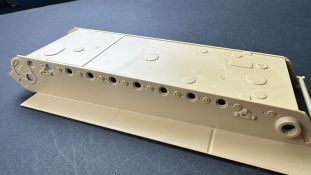 Der gleiche Grundbausatz wird auch noch in einer „Standard“ Version angeboten. Beide Versionen stellen ein sehr spätes Baulos der Tigers II oder Ausf. B dar, der ohne Zimmerit daherkommt. Was die Upgrade Version von der Standardversion unterscheidet liste ich euch auf: - Zusätzlicher umfangreicher Ätzteilebogen wie z.B. für Lampenumfassung, Lüfterschutz, Werkzeughalterungen - 3D gedruckte Bauteile für Mündungsbremse, Lampe, Kauschen, Feuerlöscher - Gedrehtes Alurohr (hier liegt nochmals eine 3D gedruckte Mündungsbremse dabei) - Bewegliche Einzelgliederkette - Antriebsräder in Einzelteilen; 4 verschiedene Zahnkranztypen - Seitenschürzen in einzelnen Segmenten Sowie in der 1. Auflage des Upgrade Bausatzes 4 gedrehte Metallgranaten als Goodie. Eine ganze Menge Zubehör, für die man einzeln bestimmt zwischen 25-30 Euro mehr ausgeben müsste, wenn man alles dazu kaufen würde. Die restliche oder Grundausstattung umfasst folgendes: - 9 Spritzlinge in beige - Vinylcaps - Seilmaterial für Abschleppseile inkl. Hilfsseil - 1x Spritzling in durchsichtigen Kunststoff - 1x Decalbogen. - 1x Metallfeder - 1x Ätzteilbogen Die Anleitung ist mehrfarbig gedruckt und sollte, laut meiner Durchsicht keinerlei Probleme bereiten. Besonderheiten oder schwierige Abschnitte / Bauteile sind farblich dargestellt. Insgesamt 31 Baustufen gibt es zu bewältigen. Die Bauteile kommen in dem üblichen Beigen/Dunkelgelben relativ weichen Kunststoff daher, der für Rye Field so typisch ist. Die Bauteile machen auf den ersten Blick einen spitzen Eindruck, kein Versatz, Einschlüsse oder sichtbare Fischhaut. Neben der wirklich feinen Detaillierung und den Gravuren verfügt der Bausatz bzw. die Bauteile über eine unglaubliche Tiefenschärfe, im englischen auch Crisp genannt. Der eigentliche Bau startet traditionell mit der Unterwanne, hier müssen die Seitenteile der „Inneneinrichtung“ links und Rechts verklebt werden, anschließend erfolgt die Montage der Schwingarme, diese sollen bei sparsamstem Einsatz mit Kleber beweglich bleiben. Leider sind die Schwingarme 2-teilig ausgeführt, was für zusätzliche Arbeit sorgt. Viele der Bauteile sind, anders als bei der Standardversion mit Ätzteilen versehen, sorgt einerseits für mehr Detaillierung, aber auch für einen nicht zu unterschätzenden Mehraufwand, als Beispiel sei hier die Halterung für das Marschkolonenlicht genannt. Interessanterweise liegt eine Motorentrennwand zum Kampfraum und für links und rechts dabei, ob wir hier noch eine Variante mit Inneneinrichtung erwarten dürfen? Die Montage der Werkzeuge auf dem Oberteil umfasst wieder viele Ätzteile, wie Halterungen, Schaufelblatt usw. Das Abschleppseil liegt als gedrehtes Seil dabei um macht einen guten Eindruck. Die Einzelgliederketten, werden in eine Lehre gelegt und mittels Bolzen verbunden, die dann abgetrennt werden müssen vom Spritzling. Es wird in der Anleitung angegeben das kein Kleber benötigt wird, ich freue mich schon das selbst testen zu dürfen! Die Motorenklappe kann offen oder geschlossen dargestellt werden, gleiches gilt für sämtliche Luken. Erfreulich das die Schürzen einzeln montierbar sind, das erlaubt dem Modellbauer sein Modell nach Belieben anpassen zu können. Die Kanone kann mit dem Verschlussstück gebaut werden, leider sieht man davon später nichts mehr. Der mehrteilige Turm ist ein wahrer Bausatz im Bausatz, so besteht der Turm aus 2 Teilen, einem separaten Dach, der Front (die auch aus 2 Stck. besteht und natürlich den gesamten Anbauteilen. Allein die Kommandantenkuppel besteht aus nicht weniger als 30 Bauteilen OHNE das MG zum Fliegerbeschuss! Ein nettes Gimnick für das Kanonenrohr ist eine beiliegende Metallfeder die einen Rückstoß simulieren kann oder soll, leider muss dabei recht viel Kraft aufgewendet werden. Für die Blende liegen 2 Ausführungen mit dabei, leider geht RFM nicht auf die unterschiede der Blenden ein, bzw. ordnet die Blenden keiner Decalvariante zu, hier heißt es – selber recherchieren Ich persönlich finde sowas doof – ein Hersteller legt Varianten bei, lässt aber den Kunden völlig im dunklen tappen für welchen Produktion Zeitraum oder Decalvariante welches Bauteil ist. Rye Field spendiert uns insgesamt 4 Decalvarianten, die sich wie folgt gliedern: - s.SS. Pz.Abt. 503, 2nd Company, Danzig, Germany April 1945 in 3-Farb Hinterhalttarnung In meinen Augen haben wir hier einen der besten Königstiger, den ich bisher sehen dürfte. Das wird aber leider durch viele kleinteilige Bauteile, Ätzteilorgien und eine Einzelgliederkette erkauft, die ich gerne durch die Segmentkette aus dem Standardbausatz ersetzt hätte. Für insgesamt 55 Euro die der Bausatz, Stand 11/2024 kostet ist das Preis-Leistungsniveau hervorragend, wie ich Eingangs schon geschrieben habe, alleine die zusätzlichen Bauteile, die in der Upgraded Version enthalten sind, rechtfertig den Kauf! Wer hätte das nach den ganzen guten und goldenen Jahren gedacht, das es die Hersteller immer wieder schaffen dem geneigeten Modellbauer ein Lächeln auf die Lippen zu Zaubern
