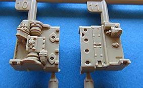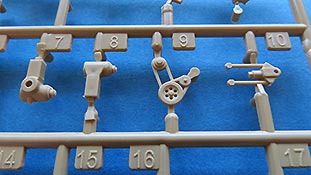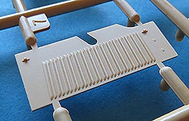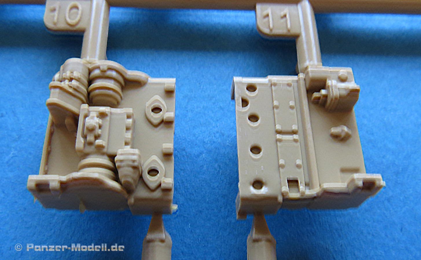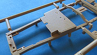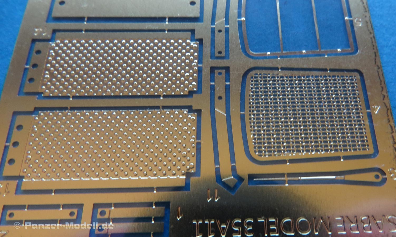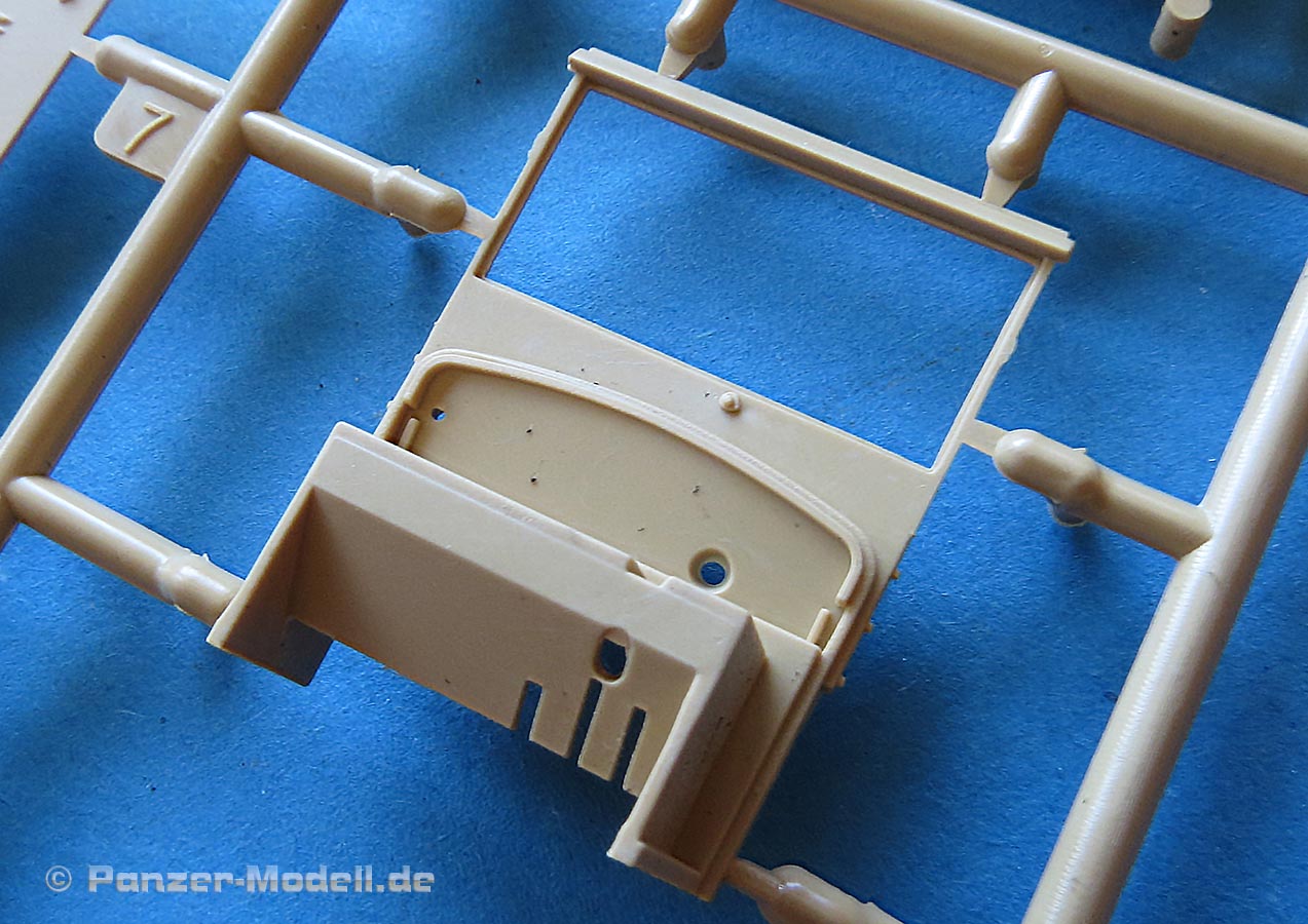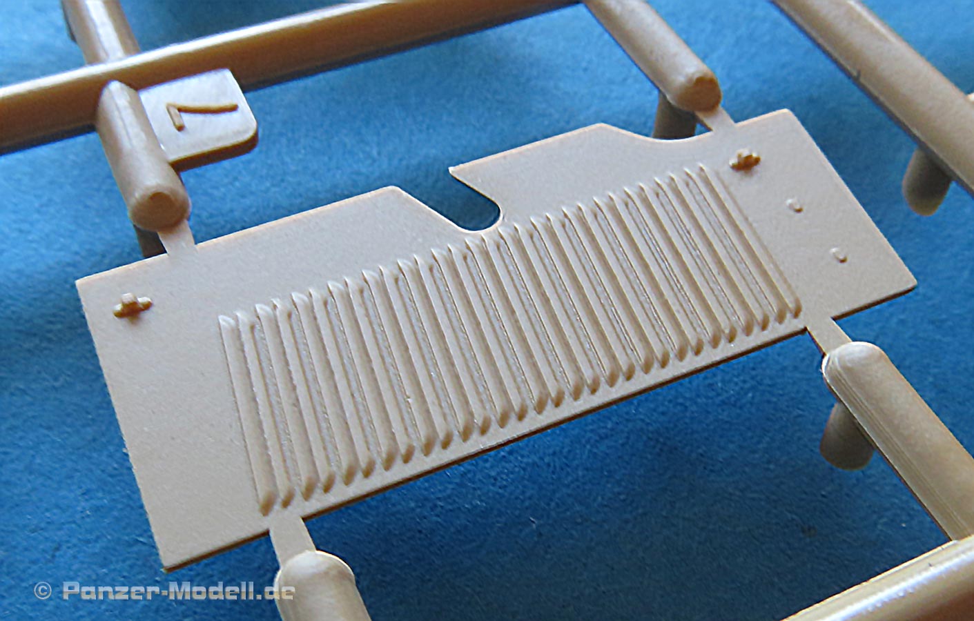Die beiden Tritte an den Seiten sind aus PE Blechen mit feiner Riffelung dargestellt. Die Scheinwerfer sind hohl dargestelllt und werden mit klaren Linsen abgeschlossen, können also in Inneren wunderbar soiegelnd bemalt wrden um dann ein realistisches Aussehen zu bekommen.