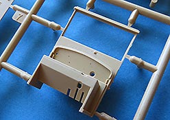 Das Fahrerraum Frontteil mit Armaturenbrett setzt sich aus nur wenigen, feinen Teilen zusammen und die klare Windschutzscheide wird in einen feinen Spritzgussrahmen eingesetzt.