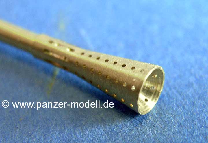 Auch hier finden sich die sonst bei anderen Herstellern vernachlässigten Rauchabgasschlitze und 7 Reihen gebohrte Rauchabgaslöcher im Trichterförmigen Mündungsfeuerdämpfer.