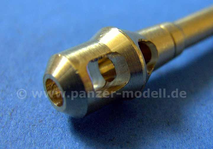 Nun gibt es sicher schon viele Rohre für den Tiger, dies ist insofern einzigartig und komfortabel, als dass die Mündungsbremse bereits komplett mitgedreht ist, d.h. kein Zusammenbau, kein Zusammenkleben mehr. Auspacken, einkleben, fertig! Das Innenleben der Mündungsbremse ist zwar nicht extremdetailiert wie bei mehrteiligen Mündungsbremsen, aber absolut ausreichend. Das Rohr ist passend für Tamiya Tiger früh und mittel, sowie für den Italeri VK4501(P). Für den Preis von 8,50 Euro bekommt man ein gut detailiertes Rohr für den Tiger das ohne viel Schnickschnack gleich an den Bausatz gebracht werden kann.