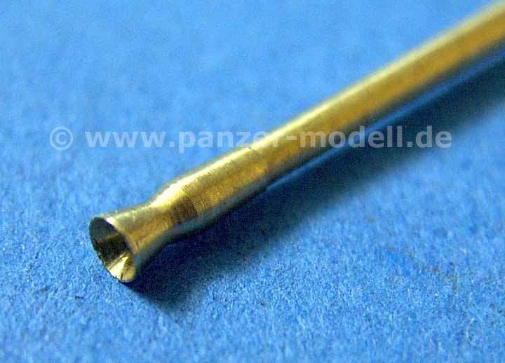 Die 20mm Kanone ist im Plastikspritzguss schon immer ein Manko gewesen ... Falsche Proportionen, nicht offene Mündungsfeuerdämpfer und dergleichen. Zum Glück gibt es jetzt Abhilfe in Form des gedrehten Metallrohres. Dieses weist einen gut gestalteten konischen Verlauf sowie einen gut gestalteten Mündungsfeuerdämpfer ohne Löcher oder Lüftungsschlitze. Eine Version mit der späten Form des Mündungsfeuerdämpfers mit den Lüftungslöchern (für Marder und Co) ist zur Zeit in Vorbereitung.