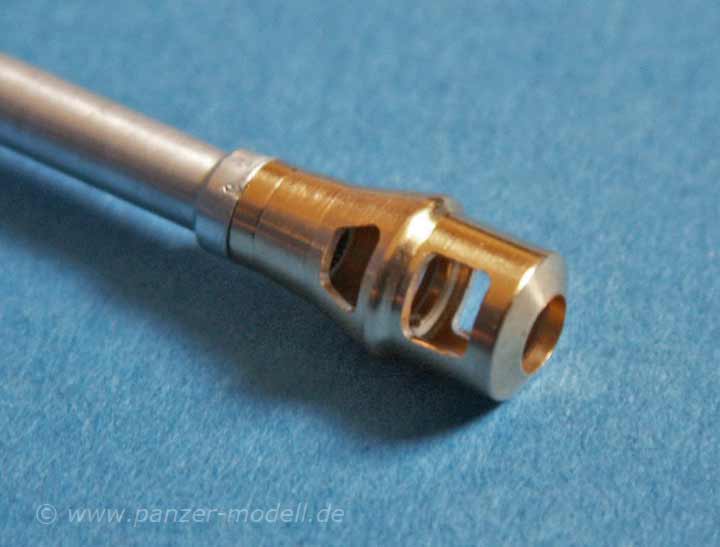 Wer davon überfordert ist, oder den Aufwand gern vermeidet, da die Feindetails später in der Mündungsbremse eh schwer zu sehen sind - für den ist das neue Rohr von Schatton wie geschaffen, DENN die Mündungsbremse besteht aus EINEM Stück und weist dabei eine erstaunlich gute Detailierung im Inneren auf. Für den Arbeitsaufwand bedeutet das: Tüte auf, Mündungsbremse auf das Rohr kleben - fertig!
