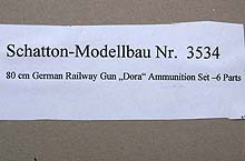 Für das 1/35 Modell der Dora gibt es nun schon Schatton ein Set aus 6 Teilen, welches die mehrteilige Munition der Dora zeigt. Diese recht imposanten Metallteile sind absolut maßhaltig und korrekt und sollten die falsche Munition aus dem Bausatz ersetzen.