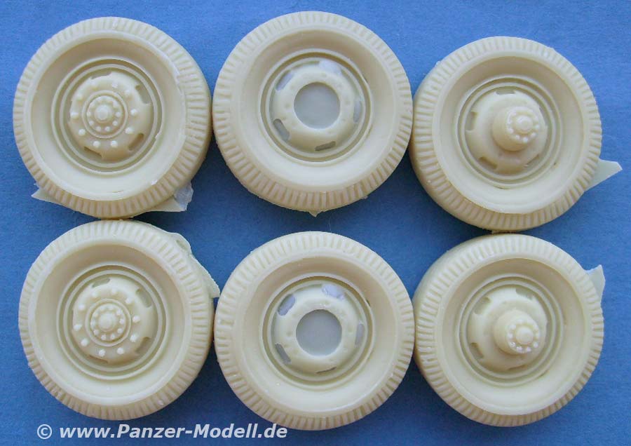 Nachdem die Räder aus dem Zvezda Bausatz leider ein Nachkriegs Erscheinungsbild aufweisen, waren richtige Reifen bitter nötig.
