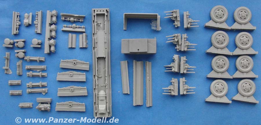 Für das Fahrwerk stehen zwei verschiedene Rassätze zur Verfügung, da es Fotos des Fahrzeugs einmal in "normaler" und einmal mit hinterer Doppelbereifung gibt.