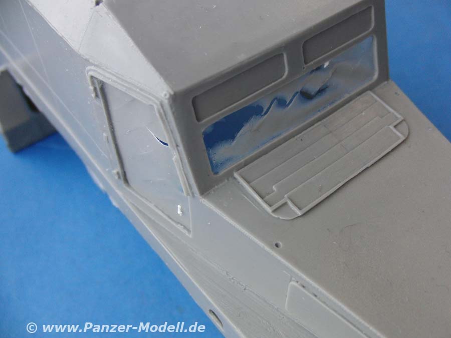 Und die Details, die sich in Plastik nicht so gut darstellen ließen, werden vom beiligenden PE Satz entsprechend fein dargestellt, bzw. ergänzt. Dies geht von der Motorabdeckung über Trittbleche bis zu feinen Scharnieren, die man sogar beweglich darstellen kann!
