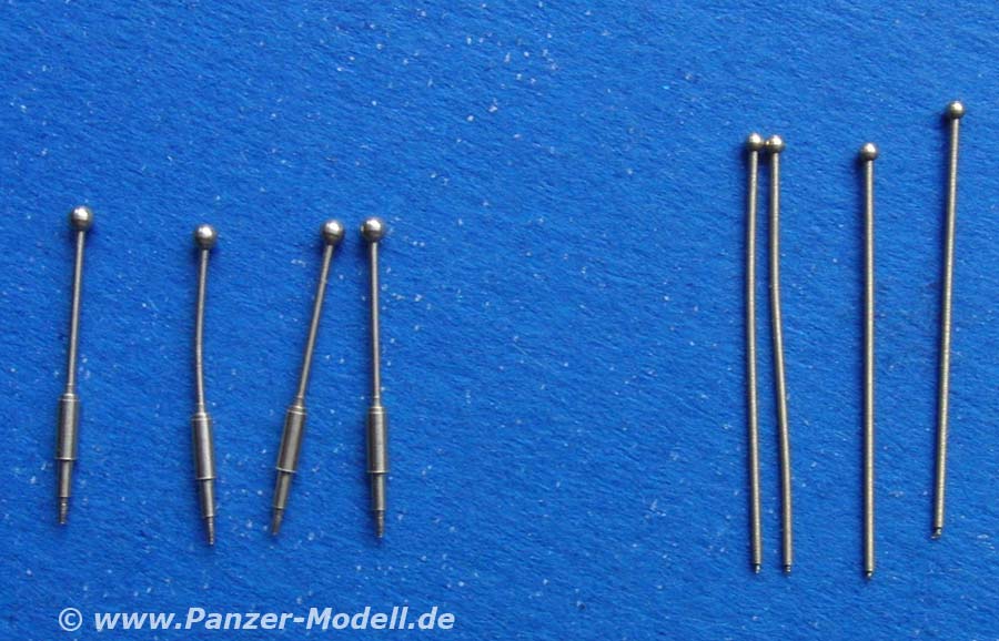Die andere Art sind lange, einfach Metallstäbe mit Kugelkopf. Diese lassen sich z.B. an frühen Panther D oder an diversen LKW finden und anhand dieses Sets individuell an ein Modell anpassen.