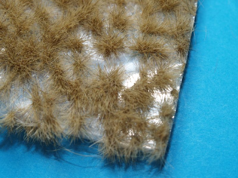 Die Verarbeitung ist kinderleicht. Man zieht einfach einzelne Büsche von der Folie ab, taucht sie mit dem Ende in Weißleim und klebt sie auf die Grundfläche. Fertig! Das Vorgehen ist in einer kurzen Anleitung in der Packung beschrieben.