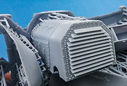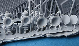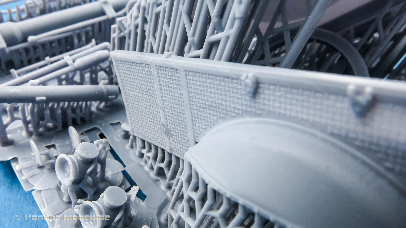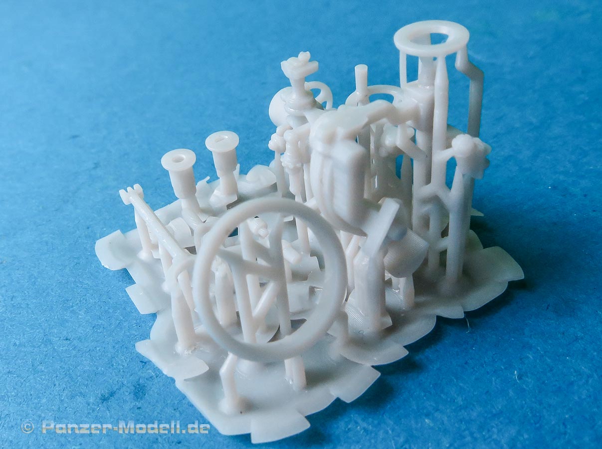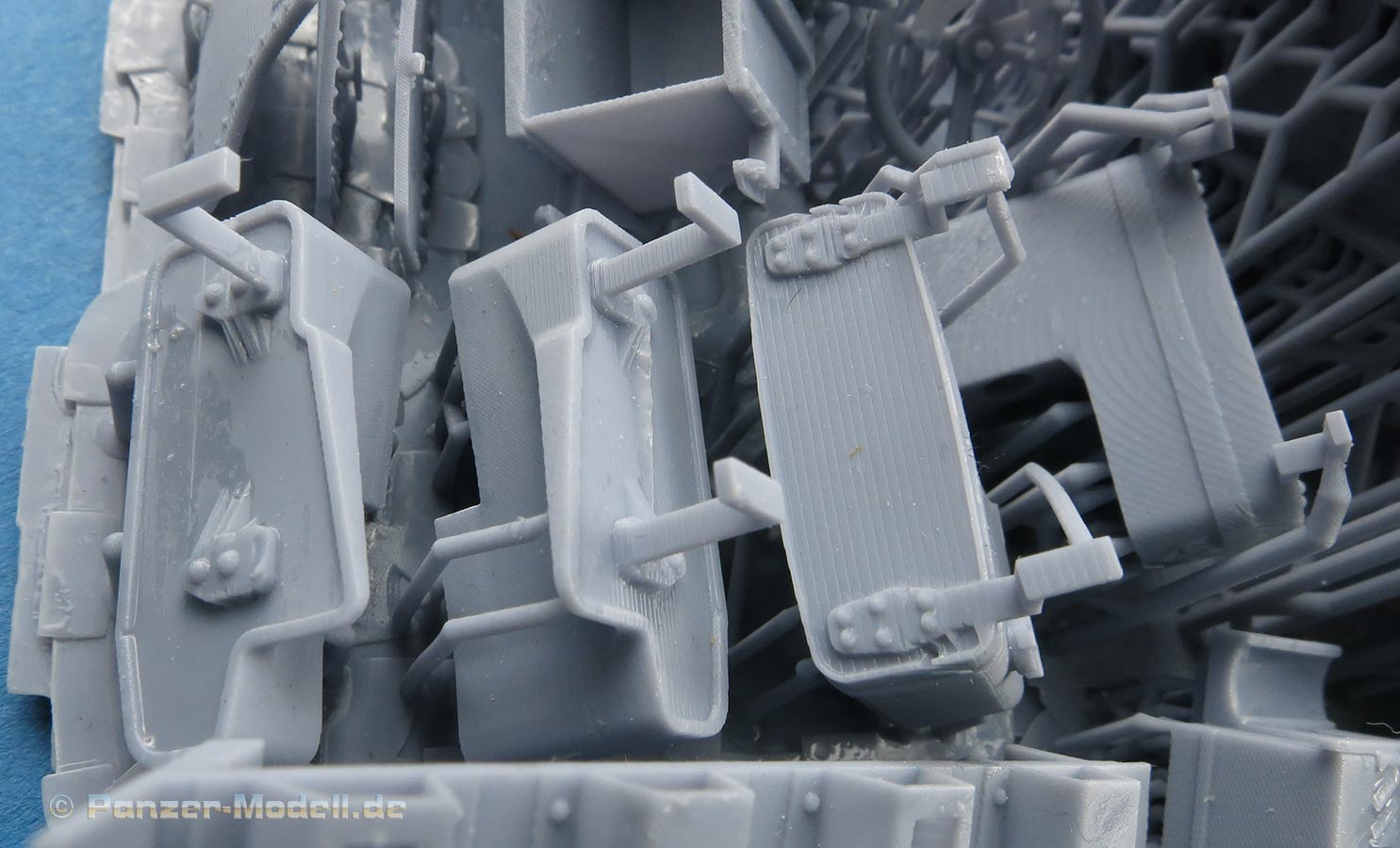 Alle diese Teile machen einen guten Eindruck. Die Großteile sind ohne Verzug oder Druckfehler - dafür feine Details an Nieten, Scharniere, Lukendeckel, Kühlerlamellen, usw.