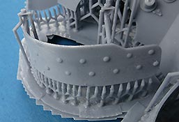 Der Aufbau setzt sich aus wenigen Großteilen wie Kühlerhaube, Übergangsstück mit Armaturen und die Fahrerkabine mit Rückteil und eingebauten Munitionshalterungen.