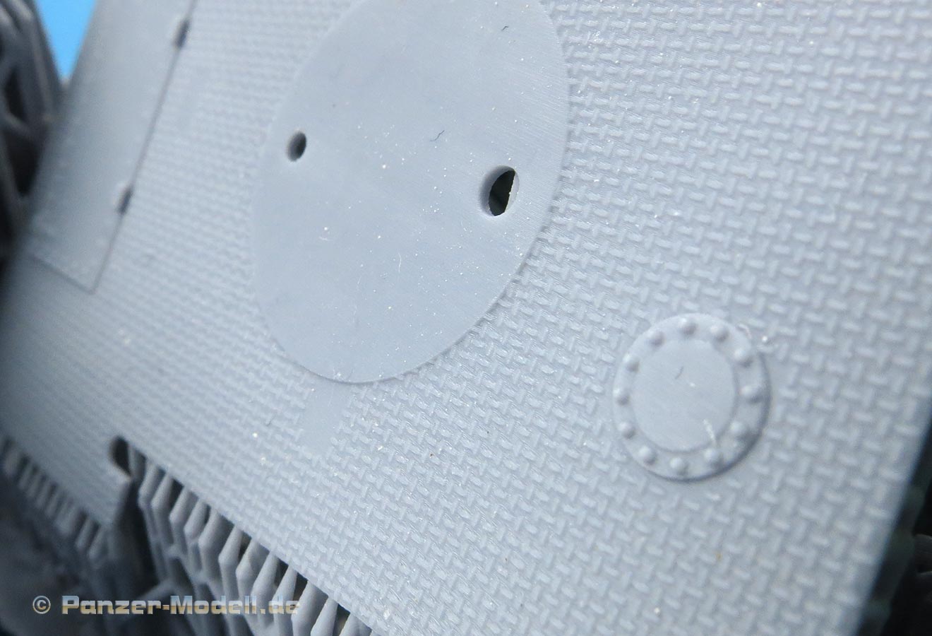 Die Bodenplatte auf dem die Flak später aufgesetzt wird ist sauber und eben gedruckt und weist ein schönes, scharfes Riffelblechmuster und weitere Details auf.