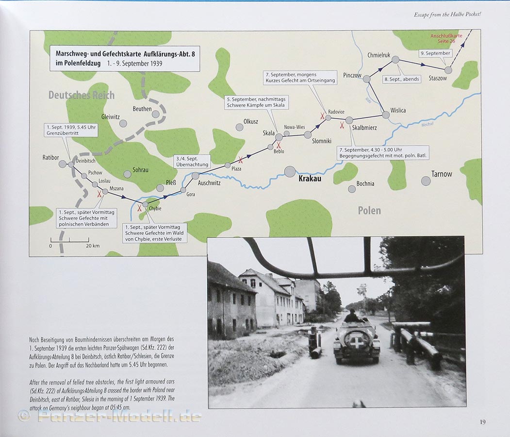 Diese beginnen als Teil des II./Aufkl.Rgt.6 und dem Einmarsch in das Sudetenland im Oktober 1938, gefolgt von den Geschehnissen und Erlebnissen im Polenfeldzug September 1939. Hier gibt viele gute und vor allem interessante Fotos besonders der frühen Panzerfahrzeuge wie Panzer II, Sd.Kfz.231 und 232, Sd.Kfz.222, Sd.Kfz.6/1, usw.