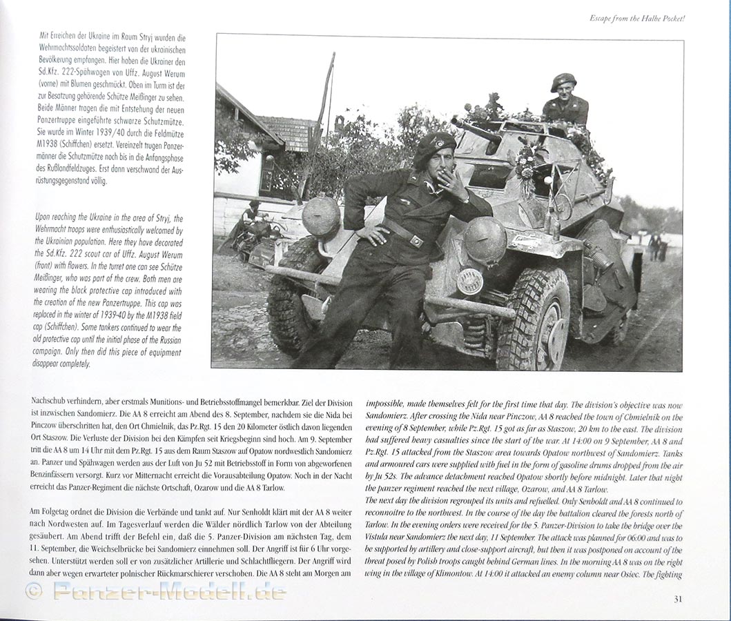 Die Berichte gehen dann nahtlos über in den Wetfeldzug als Teil der Pz.AA 8. Hier gibt es ebenfalls wieder sher interessante und pannende Berichte und Fotos, wie z.B. ein Farbfoto von zwei abgeschossenen AMC Schneider P16 und Char B1 Panzern. Auch treten hier mehr Panzer 38(t) und Panzer IV fotografisch in Erscheinung.