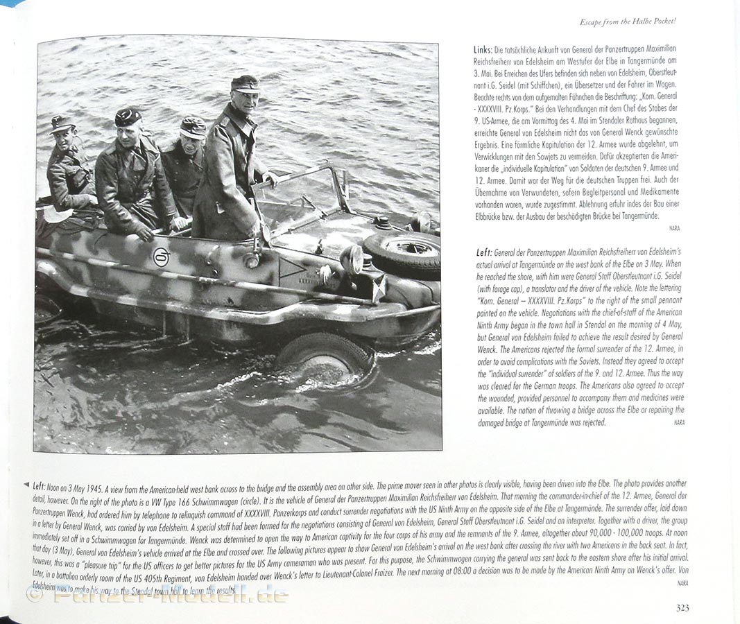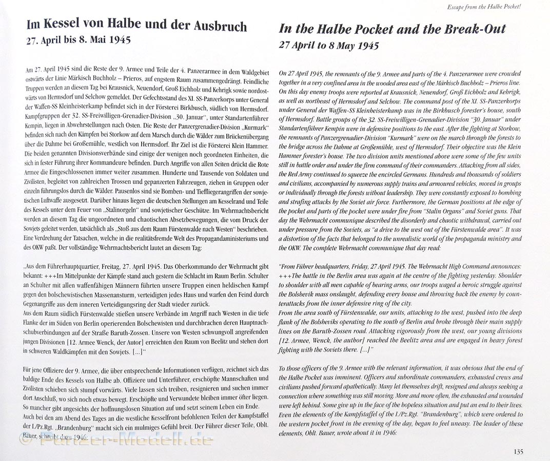 Den Hauptteil und auch den spannendsten Teil wird dann im April 1945 hier angenommen mit den Vorläufern, Ereignissen und dem letztlichen Einschluss im Kessel von Halbe im Rahmen seiner neuen Einheit I./Panzer-Regiment "Brandenburg". Allein diesem Teil, inklusive des Ausbruchs sind rund 150 Seiten gewidmet und sind durch die Fotos und persönlichen Schilderungen ausnahmslos sehr spannend und interessant zu verfolgen.