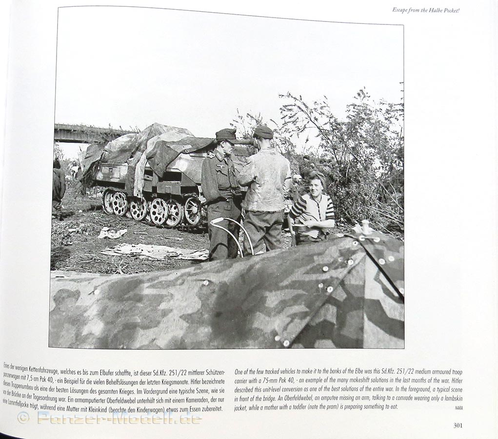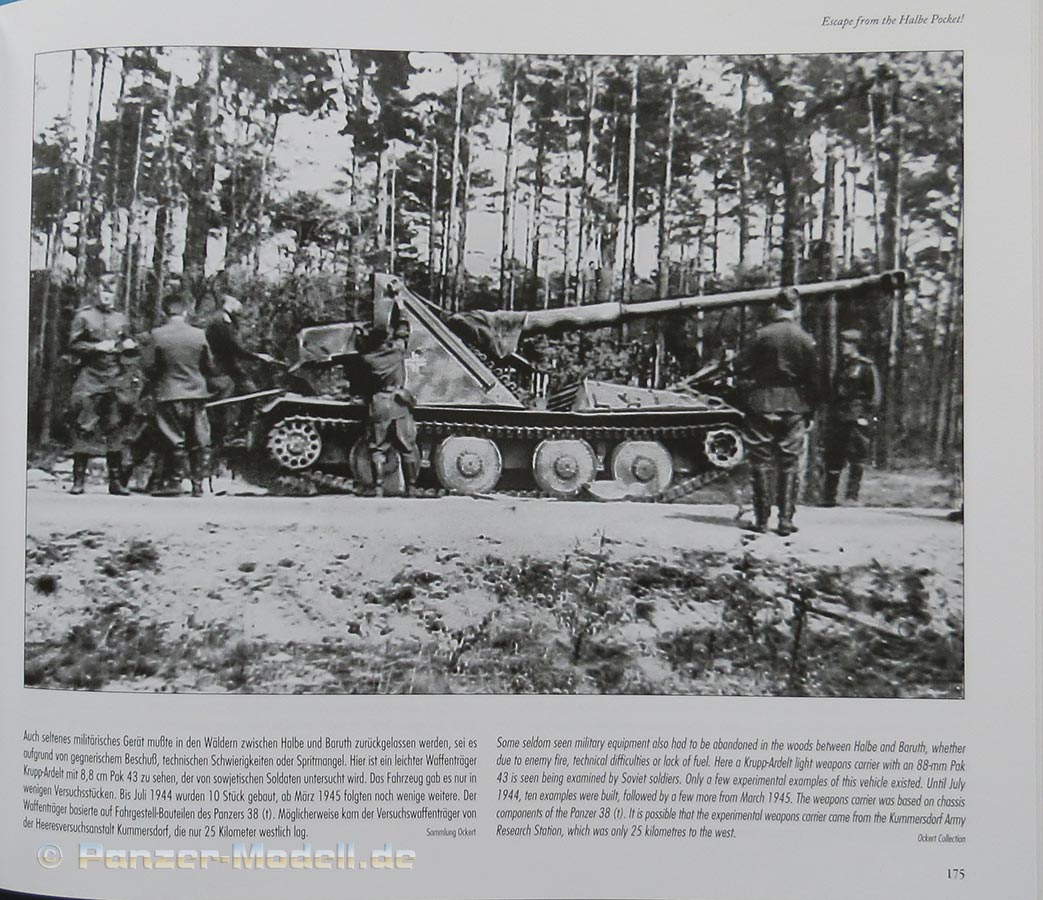 Auch die Darstellung und Dramatik der Ausbruchsversuche, Fotos von zerstörten Panzern und Material sind wirklich sehen und lesenswert. Hier finden sich auch nun vermehrt Fotos von Jagdpanzer 38, StuG III mit besonderen Truppenmodifikationen von Schürzen und späten Sd.Kfz.250 und 251. Besonders bemerkenswert ist ein großes Foto eines Krupp-Ardelt Waffenträgers.