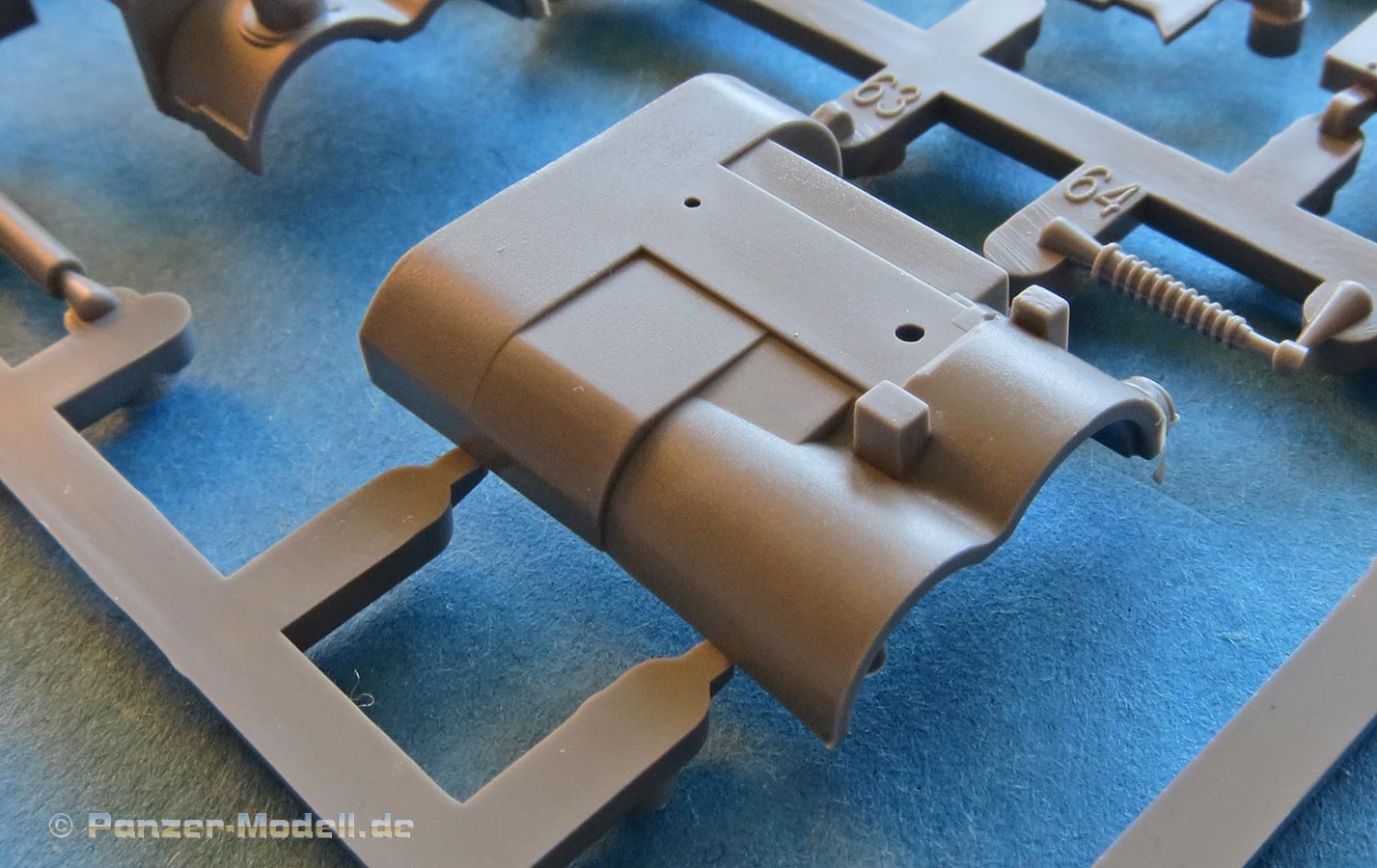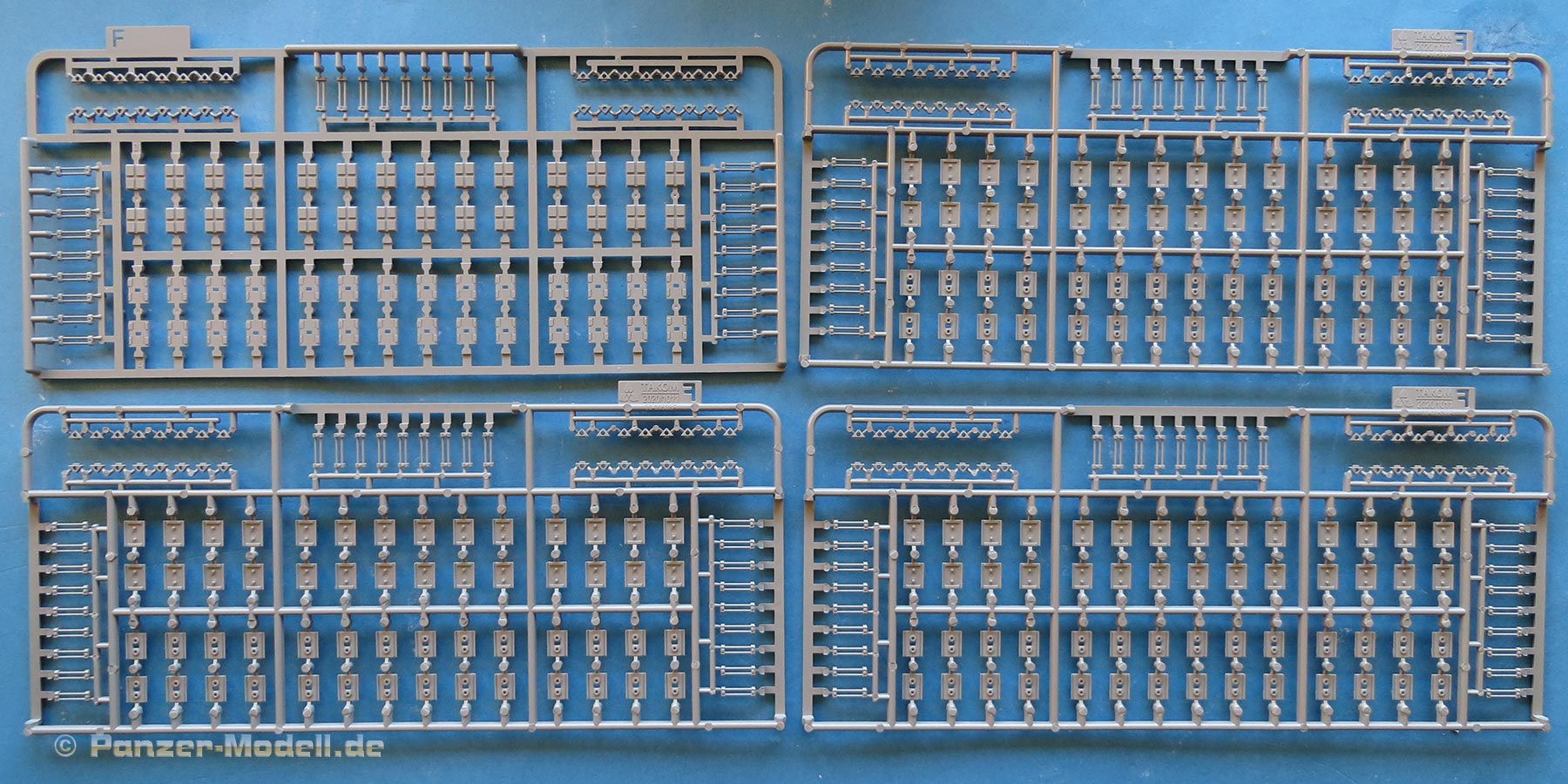 Auch im großen 1:16er Maßstab, bei dem die Teile ja mehr als doppelt so groß als bei 1:35 sind, präsentiert Takom hier Spritzgussteile auf ganz hohem Niveau. Keine Ausflüsse, kein Verzug, keine Auswerferstellen, dafür saubere, klare, "crispe" Details und alle Bereiche der Bauteile ohne Gussfehler ausgespritzt.