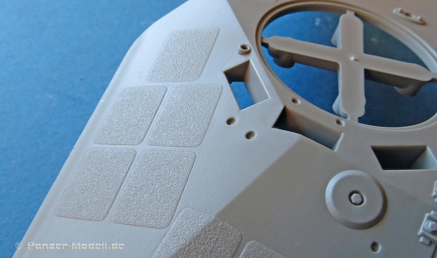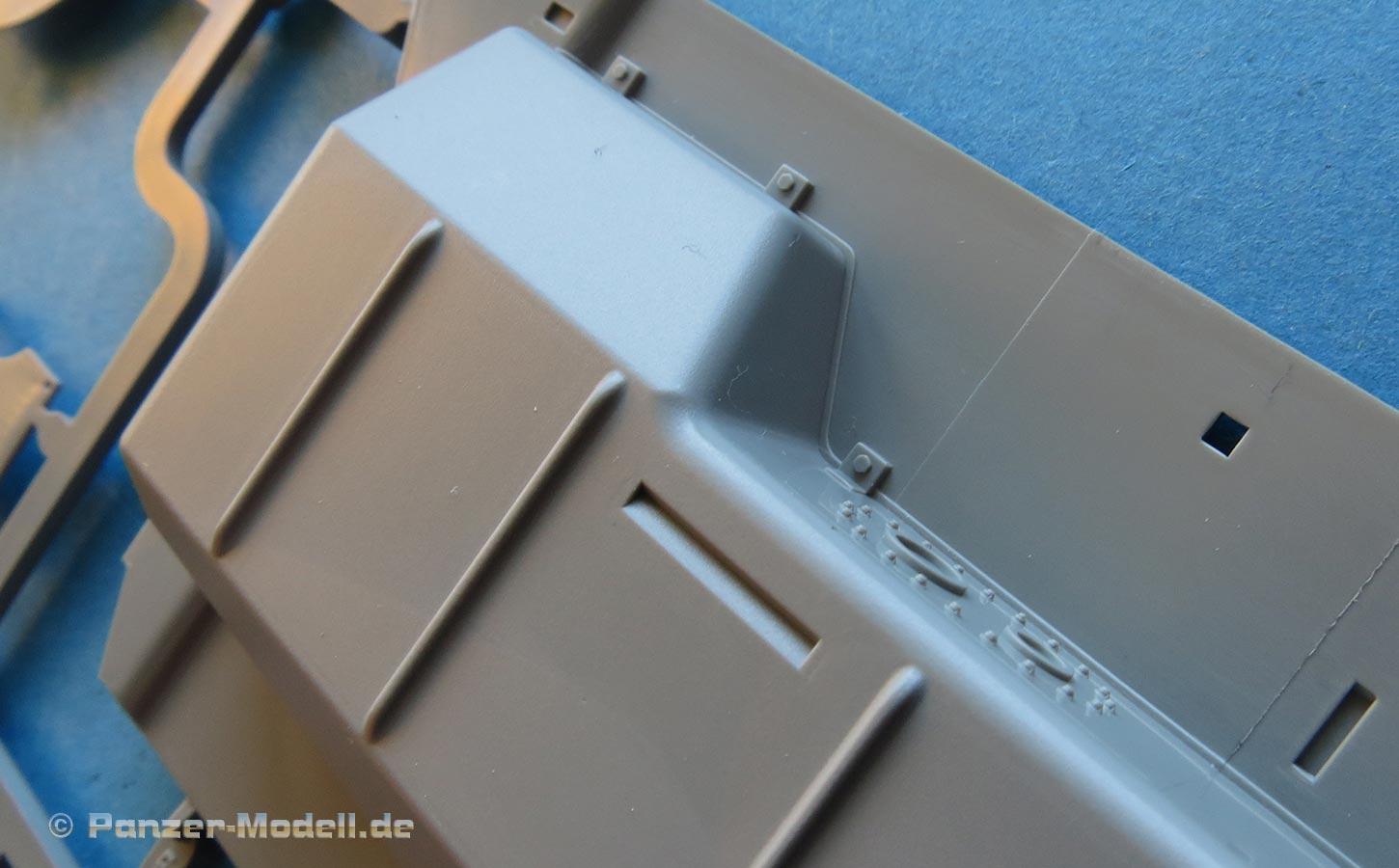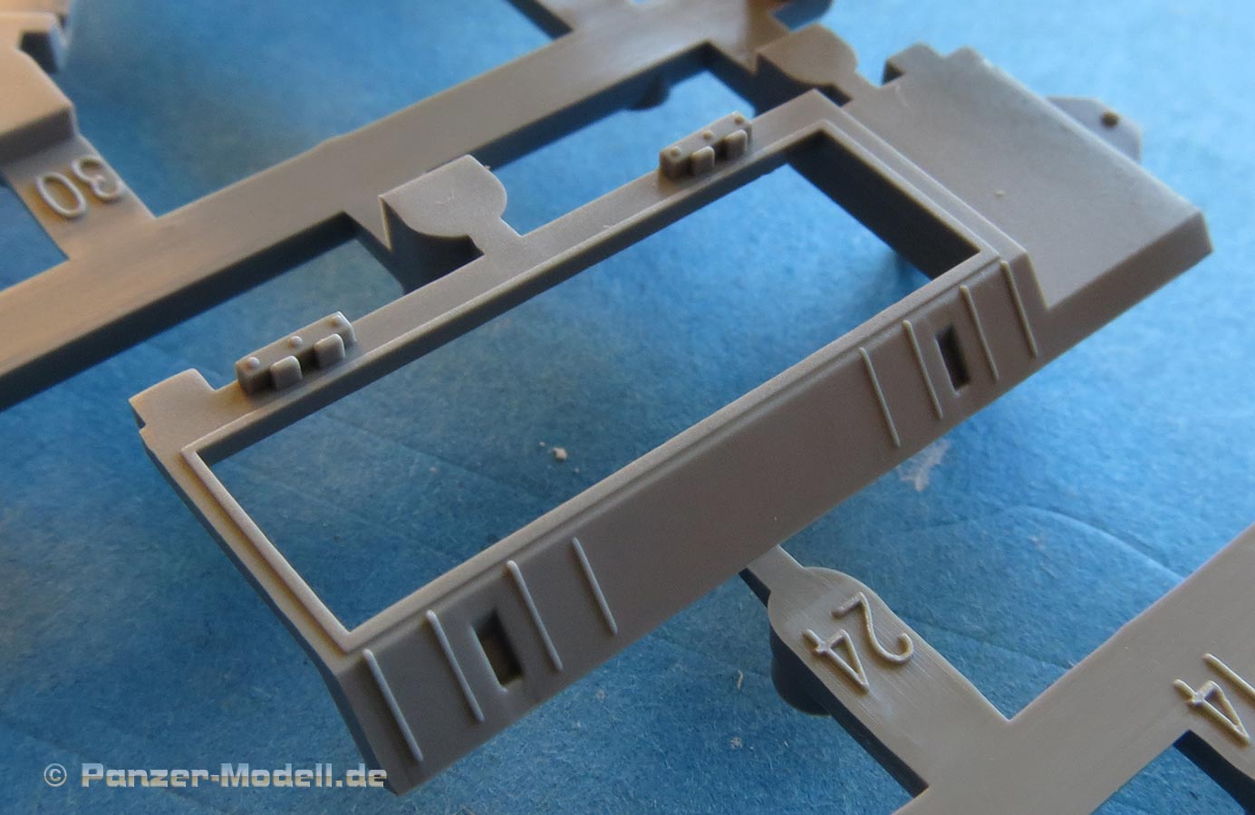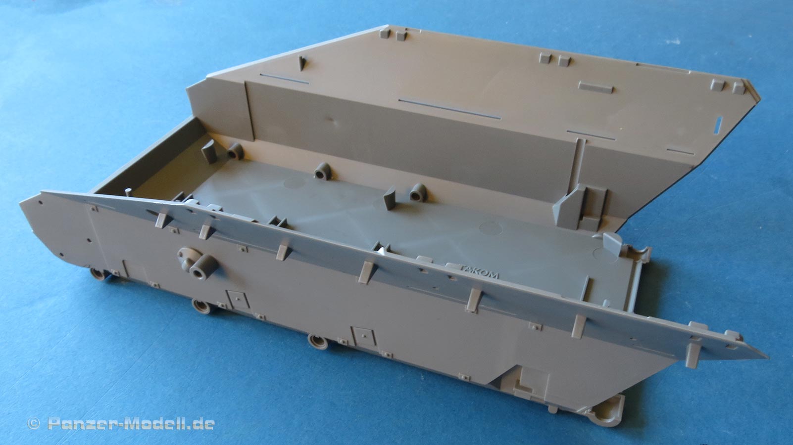 Die Unterwanne ist einteilig ausgeführt und strotzt bereits vor aufgeprägten Details wie Nieten, Blechen, Verstärkungen, usw. Sogar die typischen Kreuzpressungn im Unterboden wurden berücksichtigt.