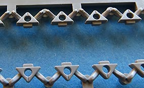 Wer das Wiesel schonmal in 1:35 gebaut hat, wird freudig erregt sein, diesen kleinen "Unterlegkeil" nun auch so bauen zu können ohne dass winzige Teile den Händen oder den älter werdenden Augen entfleucht. Die Möglichkeiten der Darstellung von Details ist wirklich atemberaubend. Nicht nur, dass Nieten und dergleichen wirklich detailliert und deutlich dargestellt sind, statt nur angedeutet, sondern auch Antirutschbeschichtung und Co. in deutlicher Detailstruktur und insbesondere eine Kette, die sich beweglich bauen lässt - bei dieser kleinen Kette in 1:35 nahezu unvorstellbar.