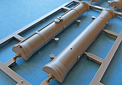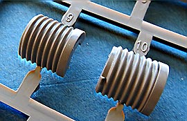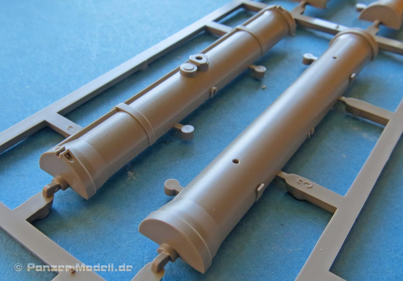 Der TOW Werfer ist erstaunlich teilelastig und stellt dabei diesen nur im Aussenbereich dar - hier aber wirklich sehr sehr schön. Die Werferteile und auch die TOW Rohre sind leider zweiteilig. Das führt zwar zu unschönen Nähten, die versäubert werden müssen, hält aber Formkosten im Rahmen und erlaubt schöne Detaildarstellungen.