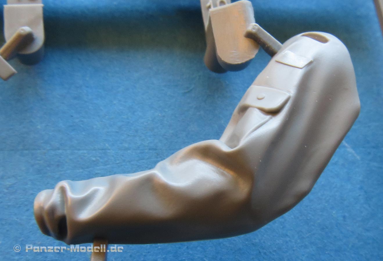Die Machart der Figur ist aber wirklich gelungen. Zwar mehrteilig aber dafür schön detailliert mit der Uniform und dem Faktenwurf. Die Hände sind grandios fein gestaltet und auch der Kopf ist sehr fein und schön gemacht. Leider wird dieser nur mit der Sprechhaube als Kopfbedeckung ausgeliefert, die zwar genutzt aber eher selten anzutreffen war - Helm oder Barett wäre optional noch schön gewesen.