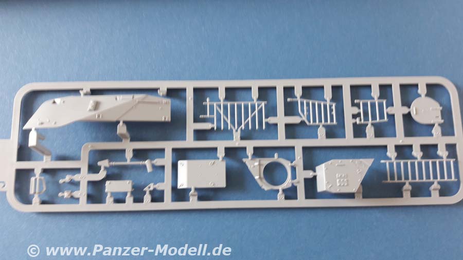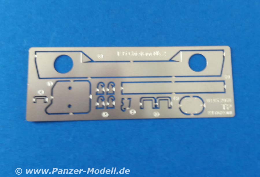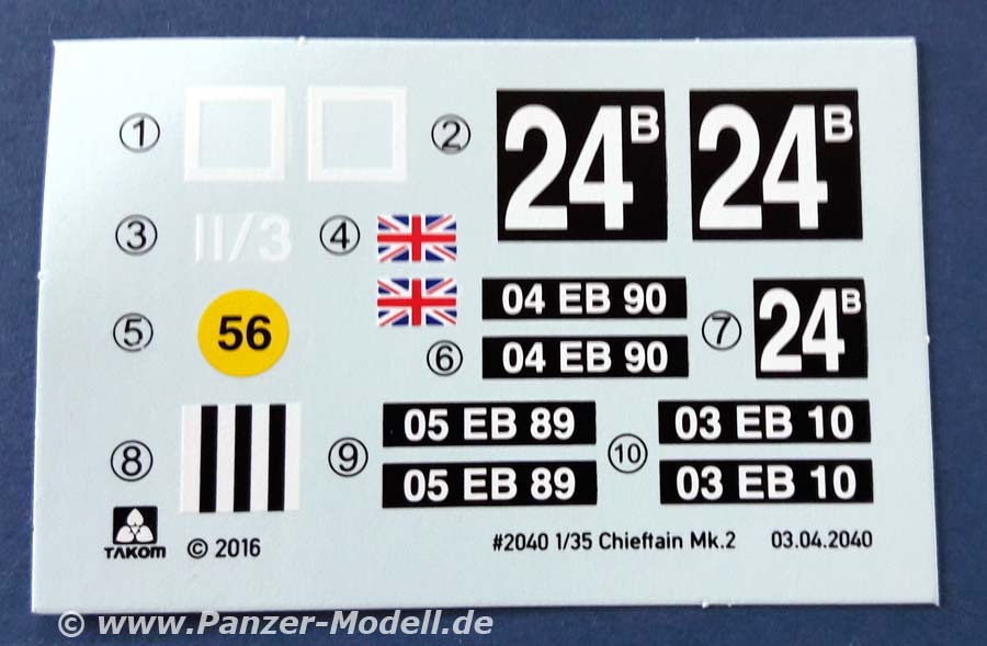 Hier liefert uns Takom nach den Versionen Mk.5, Mk.10, Mk.11 und Marksman nun das fünfte Mitglied seiner sehr guten Chieftain Serie. Im Karton finden sich 14 Spritzlinge in grauem Plastik, ein Spritzling in durchsichtigemPlastik, Oberwanne, Unterwanne, Turmoberteil, Turmunterteil, 200 separat verpackte Einzelkettenglieder, Decals und eine kleine PE Platine. Die Bauanleitung ist typisch Takom - Gut und übersichtlich. Der Chieftain Mk.2 war die erste Service Version des wohl mächtigsten Kampfpanzers der 60er und 70er Jahre. Diese Version unterschied sich noch in einigen Details von seinen Nachfolgern. Tatsächlich hat Takom sämtliche Unterschiede im Modell umgesetzt. Es liegt eine komplett neue Oberwanne bei, die die korrekten Grätings für den frühen 650PS Leyland Motor zeigt, und ebenso die Versteifungsrippen auf den vorderen Kettenblechen, welche nur bei den frühen Versionen vorhanden war. Leider ist der "Kragen" rund um den Fahrerplatz, welcher die Tiefwatausrüstung halten sollte, immer noch massiv gegossen â“ und nicht wie im Original als U-Profil. Der versierte Modellbauer kann hier aber nachgravieren oder den kompletten Kragen durch Aftermarket Profile ersetzten. Die Beleuchtungsanlage wurde korrekterweise auch auf 2 Einzelscheinwerfer geändert. Hier soll gemäß Bauanleitung das frühe breite Schwallbrett genutzt werden, welches als PE Teil beiliegt dieses kann aber auch nicht verbaut werden, da diese erst später nachgerüstet wurden - auch wenn die Bauanleitung diese Option nicht vorsieht. Auch im Heckbereich wurden die frühen verwinkelten Staukästen und die Auspuffanlage inklusive der frühen Rohrstütze korrekt wiedergegeben. Kommen wir zum Turm. Auch hier zeigt sich ein korrektes Bild eines Mk.2. Neben der frühen Kommandantenkuppel, einer Kanister-Halterung anstelle eines Staukastens, des frühen Antennensockels, der frühen NBC Filteranlage liegt auch die korrekte frühe 120mm L11 Kanone mit dem kleineren und anders positionierten Rauchabsauger bei. Auch fehlt korrekterweise der Staukorb an der hinteren rechten Turmseite - dieser wurde erst später nachgerüstet. Wie üblich liegt eine Bemalungsanleitung bei, welche sich auf die Farben von Ammo of Mig bezieht und auch von diesen erstellt wurde. Es werden 3 Versionen vorgeschlagen Wenn der Bau ebenso einfach von statten geht wie beim Mk.10, dann ist er ein Spaziergang. Absolute Kaufempfehlung! Der Preis liegt in Deutschland bei 54,- bis 58,- EUR und bewegt sich hierbei im mittlerweile normalen Rahmen.