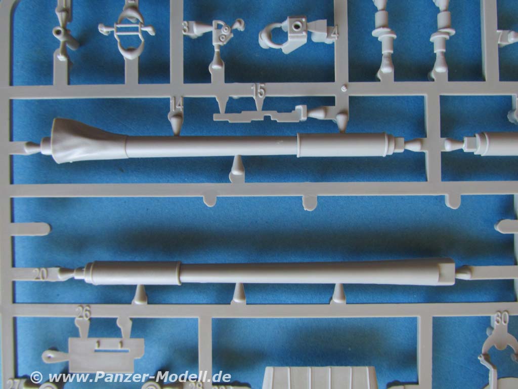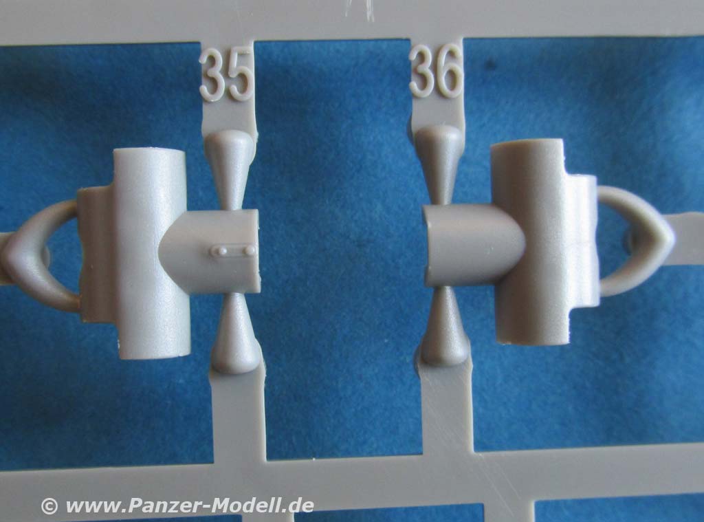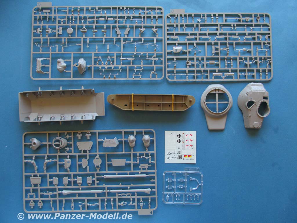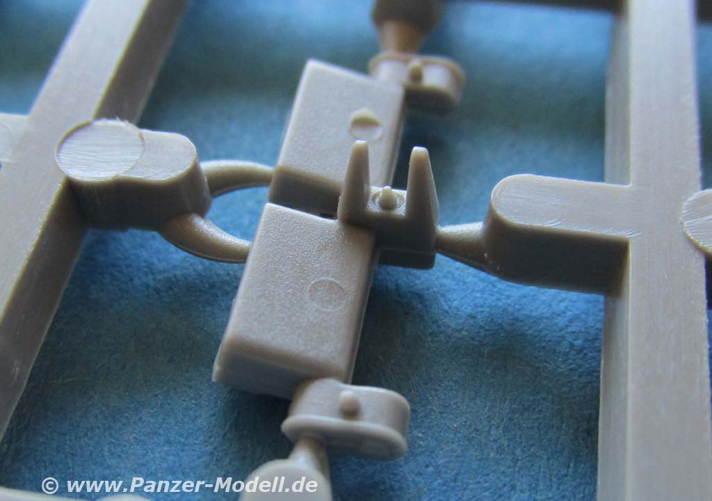 Alle Bauteile machen am Spritzling einen ganz hervorragenden Eindruck mit sauberem Guss und feinen, scharfen Details - deutlich über dem Niveau des Italerimodells. Zudem soll laut Deckel neben der US auch die deutsche Version baubar sein.