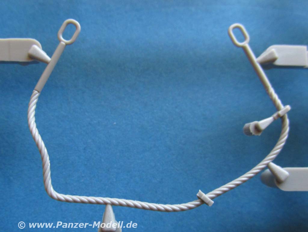 Für die Kanonenblende liegt die Abdeckplane für die Kanonenblende als drei einzelne Spiritzgussteile bei. Die Faltendarstellung ist sehr gelungen - wie gut die Spalten der drei Einzelteile verschwinden, muss man dann sehen. Netterweise sind die feinen Schnallen der Planenbefestigung auch gleich direkt mit angegossen.