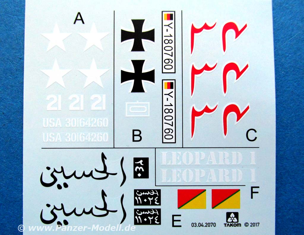 Mit dem beiliegenden Decals und den farbig gedruckten Mehrseitenansichten, die zu Beginn und am Ende der Bauanleitung können 6 Versionen gestaltet werden: