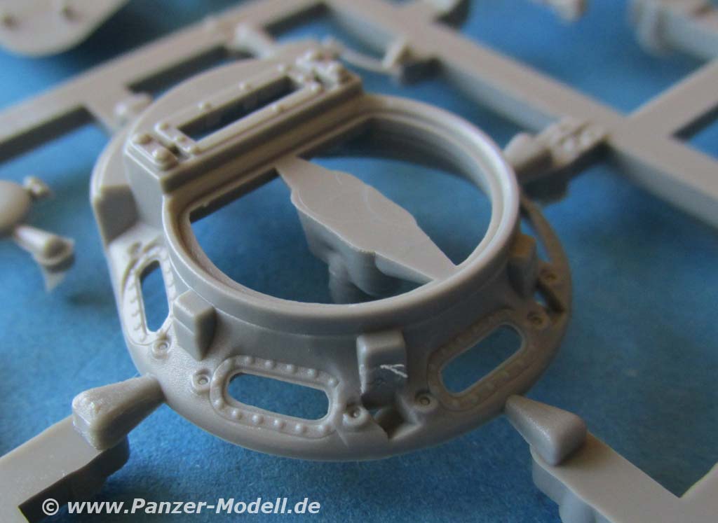 Der Turm setzt sich grob aus zwei Teilen zusammen (Ober- und Unterteil und auch hier findet sich die sehr gelungene, feine Gussstruktur. Auch die Kommandantenkuppel macht einen ganz ausgezeichneten Eindruck mit feinen Details mit den Sichblöcken aus transparentem Plastik. Natürlich ist die Kommandantenkuppel, wie auch die Ladeschützenluke mit offener oder geschlossener Luke baubar.
