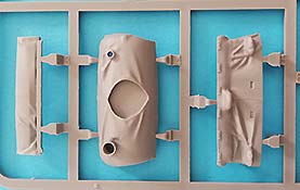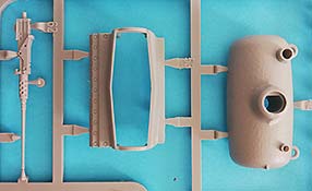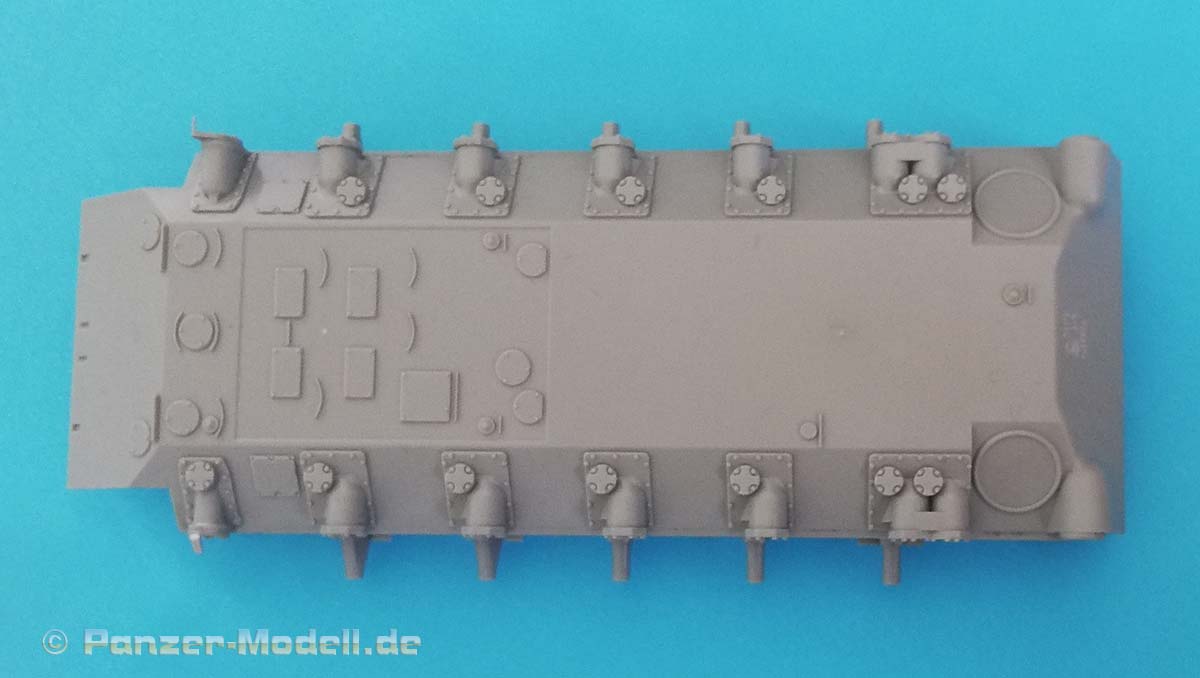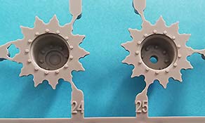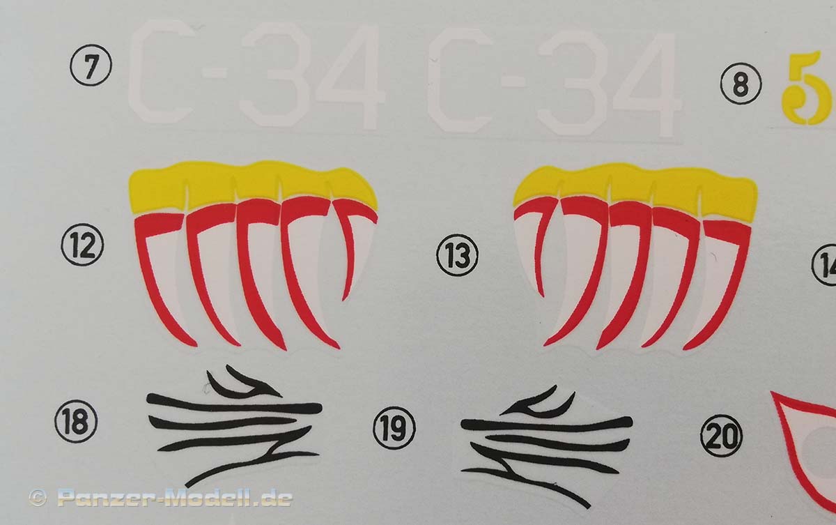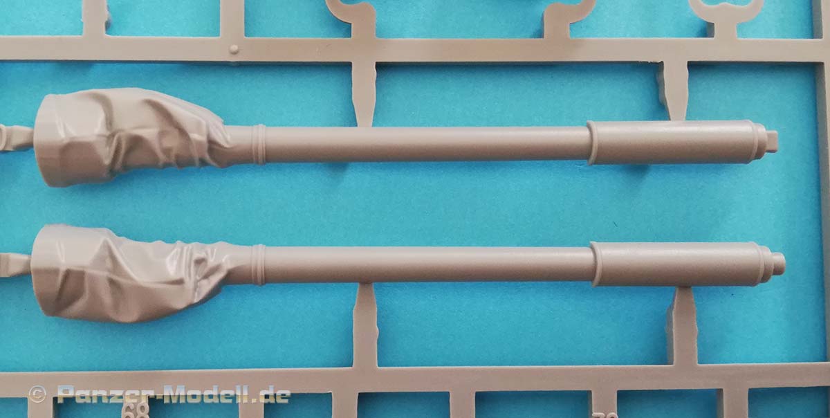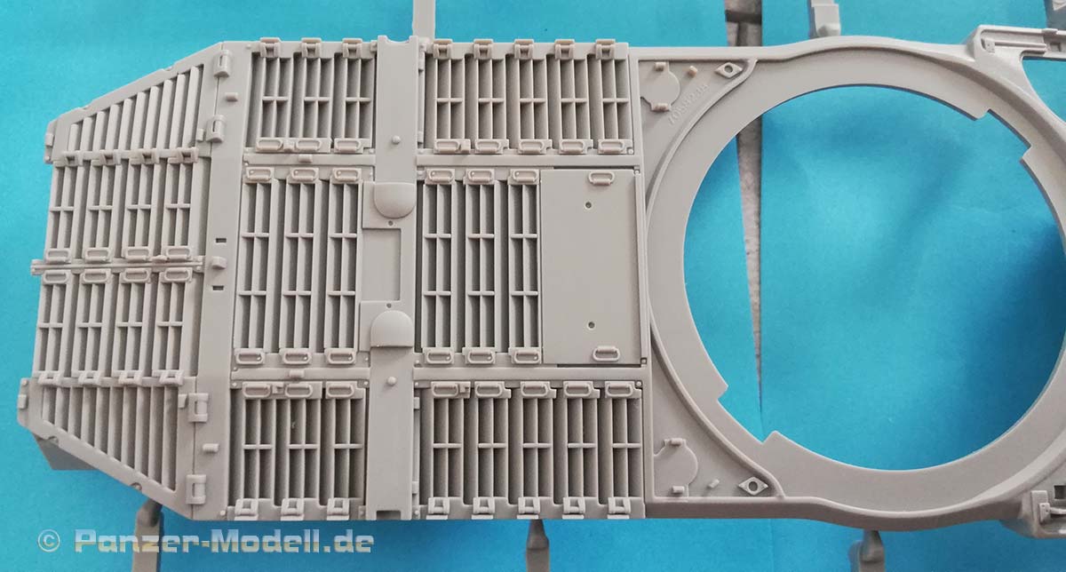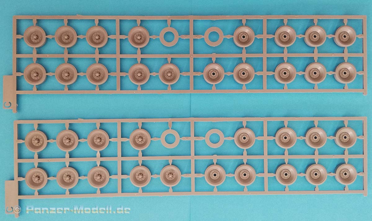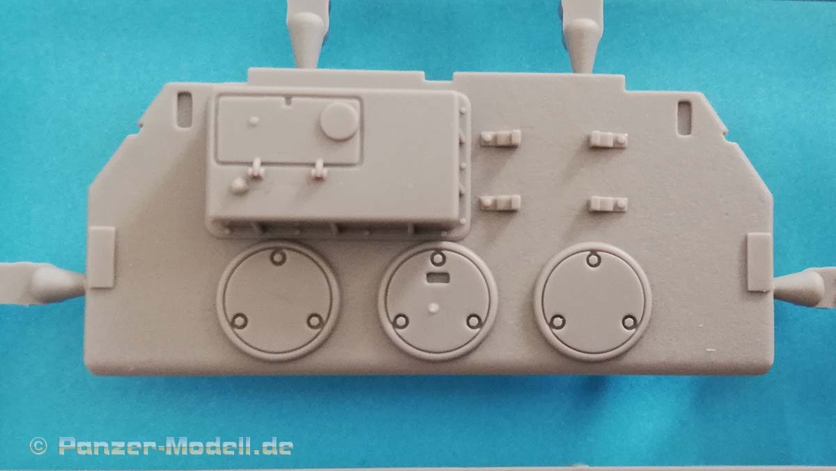 Die einzelnen Spritzlinge sehen hervorragend aus. Es finden sich natürlich weder Fischhäute noch Grate. Die Auswerferstellen findet man nur an später nicht mehr sichtbaren Stellen, mit Ausnahme der Ketten, hier finden sich die Auswerfermarken im teilweise sichtbaren Bereich, diese sind aber so fein, dass sie ohne Probleme sehr leicht verschliffen werden können. Die Wanne ist aus einem Stück gegossen, und weist hervorragende Hinterschneidungen und Details auf. Die Schwingarme werden einzeln eingesteckt und die Dämpfer angeklebt danach können die Schwingarme in der korrekten Position unter Zuhilfenahme der beiliegenden Lehren in der korrekten Position ausgerichtet werden. Perfekt. Im weiteren Verlauf kann dann die Kette unter Zuhilfenahme dieser Lehren stressfrei montiert werden. Hier hat der Modellbauer dann die Wahl zwischen zwei verschiedenen Kettentypen: Der T84E1 Kette mit Gummipolstern oder der T80E1 mit Stahlgreifern. Welche Version hier genommen wird hängt von dem zu bauenden Fahrzeug ab. Leider hat Takom es hier versäumt, in der Bauanleitung auf das entsprechende Farbschema hinzuweisen, bei welchem Panzer welche Kette gefahren wurde. Hier ist also Eigenrecherche angesagt. (Dies gilt im übrigen auch für die Verwendung der Wetterschutzplanen der Kanonenblende und der Seitenschürzen Wetterschutzplanen waren meistens vorhanden, Kettenschürzen fast nie) Wer allerdings andere Ketten aufziehen möchte, findet eine Auswahl im Aftermarket Bereich. Die Oberwanne macht einen sehr schönen Eindruck, mit filigranen Lüftungsgittern und einer wunderbar dargestellten rauen Gussstruktur und feinsten Gussnummern. Dieses beides findet sich auch am hervorragend getroffenen Turm. Hier, wie auch an der Oberwanne, werden schön detaillierte Anbauteile verbaut. Die hohe Qualität zieht sich durch den ganzen Bausatz. Alle Besatzungsluken können offen oder geschlossen gebaut werden, für die Optiken liegen Glasteile bei. Ein gutes Browning M2 .Cal 50 MG kann auf dem Turm montiert werden. Alle Griffe liegen separat bei -hier kann sich manch anderer Hersteller eine Scheibe abschneiden! Das Rohr der Hauptbewaffnung liegt zweimal bei, einmal in zwei Hälften mit einer tollen Wetterschutzplane, die einen natürlichen Faltenwurf zeigt, und einmal in einem Stück für die ebenfalls vorhandene „nackte“ Kanonenblende. Auch liegt ein Zielscheinwerfer bei, dieser ist aber ein typisches Ausstattungsmerkmal der Marine Corps Panzer und sollte nur bei diesen Verwendet werden. Der Scheinwerfer an sich ist Top detailliert und macht einen hervorragenden Eindruck. Vielleicht soll hier auch das Stück Kupferdraht Verwendung finden, ansonsten habe ich es nicht in der Bauanleitung gefunden vielleicht habe ich es aber auch nur übersehen…… Die Bauanleitung im typischen Takom Stil beinhaltet auf dem Cover einen kurzen Abriss über die Geschichte des M46 und führt dann in 27 Schritten zum fertigen Modell. Ab Baustufe 25 kann man wählen, ob man ein Fahrzeug mit oder ohne Wetterschutzplane bauen möchte hier also aufpassen! Die Decal Optionen erlauben die Darstellung von NEUN Fahrzeugen: Sechs Fahrzeuge der US Army in Korea, eingesetzt zwischen 1951 und 1955 davon vier mit „Tigerfaces“ und eines in Wintertarnung. Drei Fahrzeuge dse US Marine Corps, eingesetzt in Korea zwischen 1952 und 1953 davon eines mit Zielscheinwerfer. Mein Fazit: Eine absolute Kaufempfehlung Ein toller Bausatz aus einem (leider immer noch) vernachlässigtem Themengebiet. LEIDER ist der Modellbauer hier auf Eigenrecherche angewiesen, wenn er ein bestimmtes Fahrzeug darstellen möchte. Wer allerdings einen „typischen“ M46 aus dem Koreakrieg bauen will, der kann hier voller Freude sofort losbasteln.