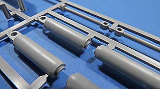 Die Gummiendverbinder sind für den Werkstoff recht schön detailliert aber teilweise ein bisschen mit Fusselkram-Ausfluss. Der ist etwas schwer zu versäubern, da das bei so weichem Gummi immer etwas schwierig ist.