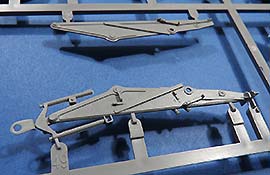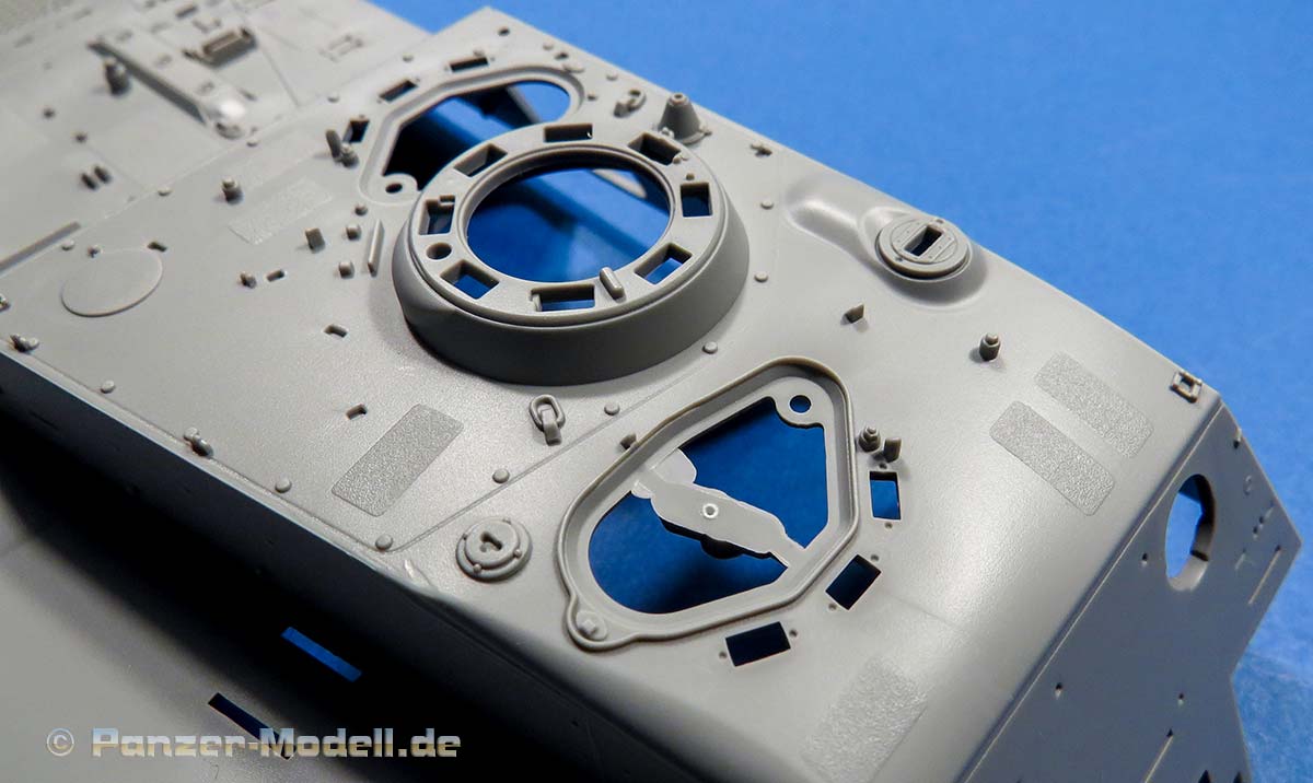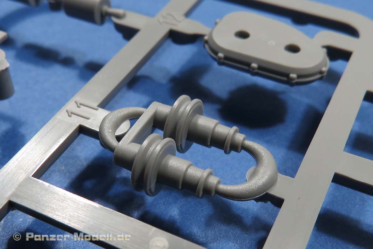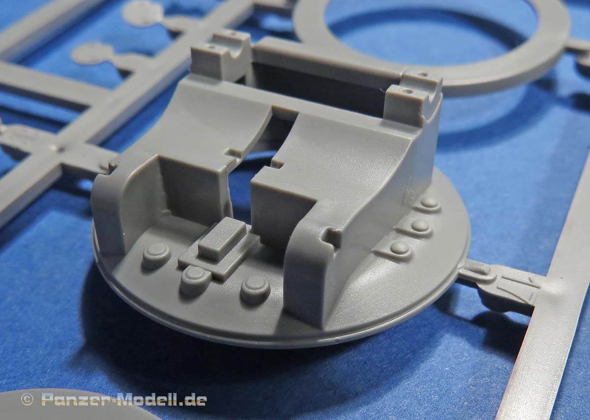 Ansonsten sind die Details an der Wanne wie von Takom zu erwarten gut. die Schwingarme liegen einzeln bei und werden sehr passend in den jeweiligen Aufnahmen verklebt. Ein bewegliches Laufwerk ist nicht ohne weiteres baubar.