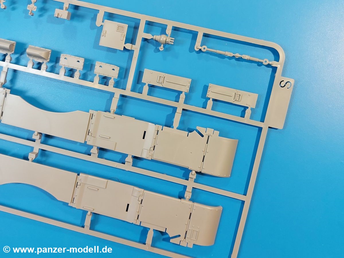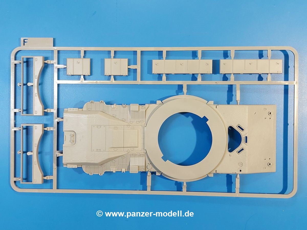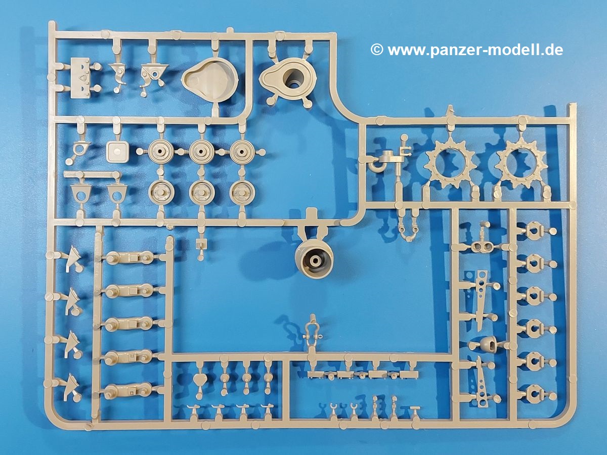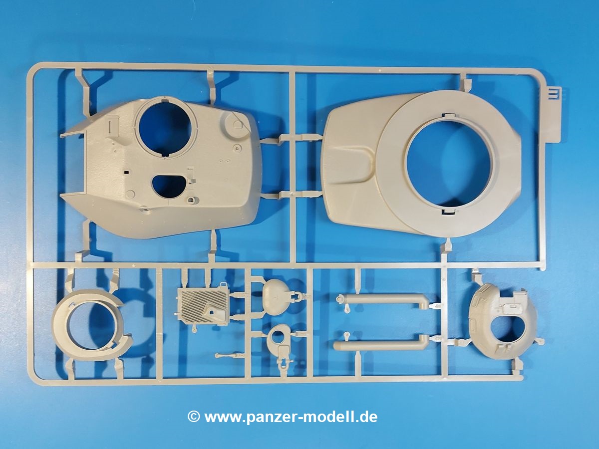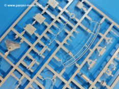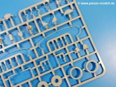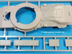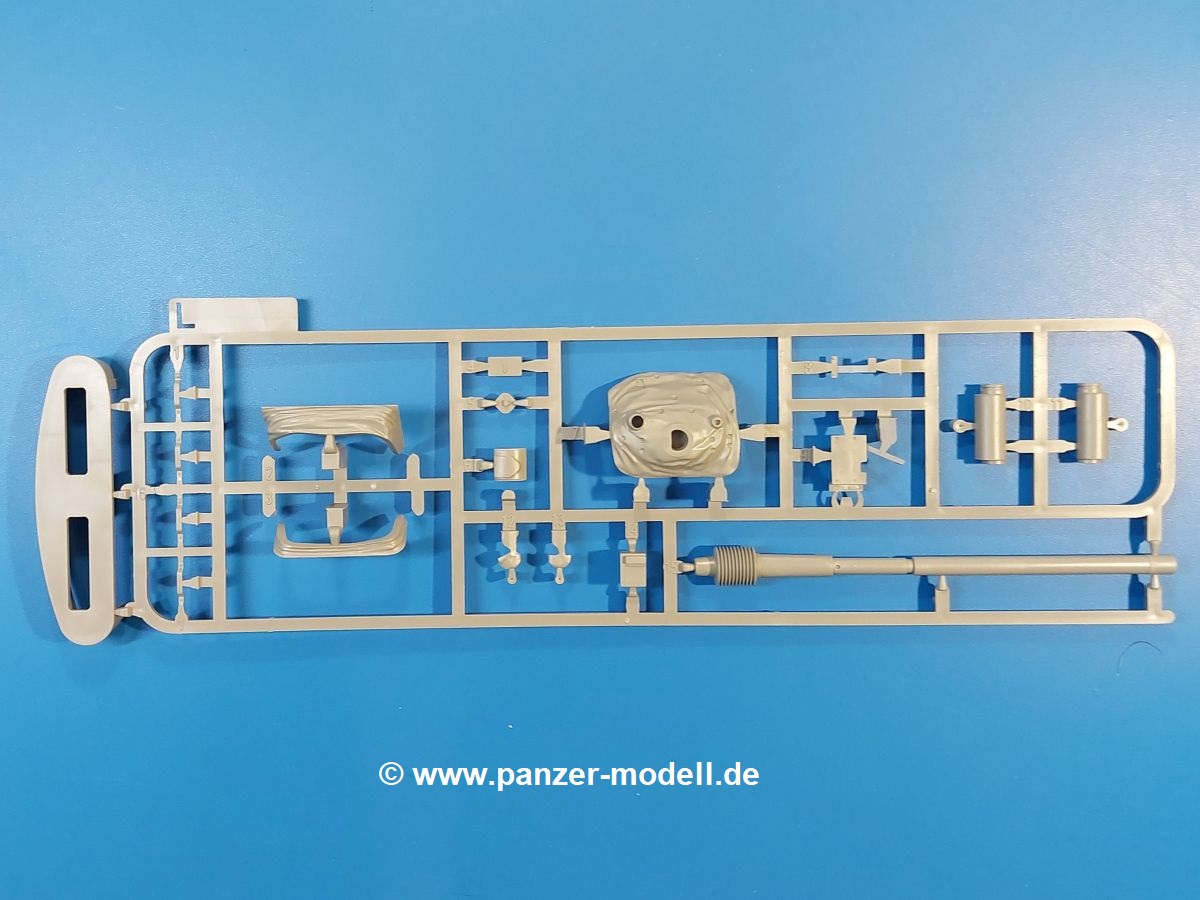 Das Original: Der M-60 ist ein Kampfpanzer aus der Zeit des kalten Krieges, der auch heute noch bei einigen Ländern im Einsatz steht. Er war der Nachfolger des M-48, was man bei der ersten Version noch deutlich an der Turmform sehen konnte. Ab der Version M-60 A1 bekam er einen größeren, neu konzipierten Turm. Er wiegt ab A1 fast 53 Tonnen und erreicht mit seinem 750 PS Motor eine Höchstgeschwindigkeit von 48 km/h auf der Straße und 32 km/h im Gelände. Seine Bewaffnung besteht aus einer 105 mm M68 Kanone, einem M240 MG und einem M85 MG. Zum Gefecht stehen der 4-köpfigen Besatzung 63 Schuss 105 mm, 6000 Schuss 7,62 mm und 900 Schuss 12,7 mm Munition zur Verfügung. Konzipiert um gegen sowjetische T-54 bestehen zu können, konnte er sich in der Operation Desert Storm auch gegen T-55 und T-72 behaupten. Im Laufe der Jahre erhielt er weitere Kampfwertsteigerungen, zuletzt als M-60 A3 TTS. Der Bausatz: Bereits vor 2 Jahren hatte TAKOM den M-60 A1 mit ERA herausgebracht. Danach war in Richtung M-60 erst einmal Ruhe. Nun liegt vor uns der ursprüngliche M-60 A1 Der Karton ist 380 x 250 x 85 mm groß und gut bepackt. Die Spritzlinge sind in größtenteils wieder verschließbaren Klarsichttütchen verpackt. Wir finden im Karton 11 hellgraue Spritzlinge, 2 Klarsichtspritzlinge, die Unterwanne, eine PE-Platine, 1 Draht, 2 Stahlstifte und 1 Decalbogen. Dazu kommt eine 20-seitige Bauanleitung. Die Unterwanne ist einteilig und weist bereits viele, feine, saubere Details wie Notausstiegsluke, Wartungsdeckel und für die Aufnahme der Laufwerkskomponenten auf. Hinzu kommen feine, aber deutliche Gussnummern. Auch die Gussstruktur ist gut wiedergegeben. Die Laufwerkskomponenten bestehen aus den Stoßdämpfern und Endanschlägen der Schwingarme. Diese setzen sich mehrteilig zusammen und werden dann fest und arretiert in die Aufnahmen in der Unterwanne eingeklebt. Die Laufrollen setzen sich aus den Radkörper und der Laufrollengummierung in Spritzguss zusammen, wobei der innere Teil der Doppellaufrolle einteilig ausgeführt ist. Der Detailgrad ist hier wirklich höchst erfreulich und scharf und durch die separate Gummierung für die Außenlaufrolle bekommt man perfekt die markante M60 Laufrolle mit der Hinterschneidung des Felgenrandes dargestellt. Die Oberwanne besteht aus einem Teil, das den Vorderrumpf (mit offen darstellbarer Fahrerluke und Aussparungen für die Winkelspiegel) und die Motorabdeckung mit den geriffelten Wartungsklappen umfasst. Die Kettenbleche werden mit gelochten Halterungen, vielen großen, aber fein detaillierten Staukästen versehen und später separat an die Wanne geklebt. Die markanten Hecktüren mit ihren Schrägriffelungen weisen eine gute Tiefe auf. Im Bausatz liegt auch noch die Hecktür zum Verbau des Teifwatauspuffs bei, ist aber nicht für diesen Bausatz vorgesehen. Der Turm besteht aus Unter- und Oberteil. Wie bereits an der Wanne konnten wir eine gute Gußstruktur und Gußnummern entdecken, die auch die Kommandantenkuppel auszeichnen. Die Kuppel lässt sich schwenkbar bauen, ebenso das 12,7 mm MG, wenn man sich für die Version ohne Allwetterplane entscheidet. Die Kommandanten- wie auch die Ladeschützenluke können offen oder geschlossen angebaut werden. Die Abschleppseile werden aus Kupferdraht und Seilkauschen aus Plastik hergestellt und in die Haltehaken aus PE jeweils vom Turmheck zu den Seiten geführt. Der Turmstaukorb besteht aus 7 Plastikteilen und 2 PE-Gittern. Während man das Bodengitter so verkleben kann, muss das zweite Gitter erst mittels einer im Bausatz enthaltenen Biegeform gebogen werden. Die 105mm M68 Kanone besteht aus einem einteiligen Rohr, leider ohne Züge und Felder an der Mündung, und wird mit dem 2-teiligen Rauchabsauger ergänzt. Da die Blende samt Plane ausgebildet ist, wird die Kanone nicht höhenrichtbar sein. Der große Schießscheinwerfer hat schöne Innendetails, die auch durch die große, kristallklare Scheibe gut zu sehen sein werden. Die Halterung des Scheinwerfers hat mit 10 Teilen doppelt so viele Teile wie der Scheinwerfer selbst. Die Decals sind seidenmatt glänzend und scharf gedruckt. Damit lassen sich 5 Fahrzeuge darstellen:
