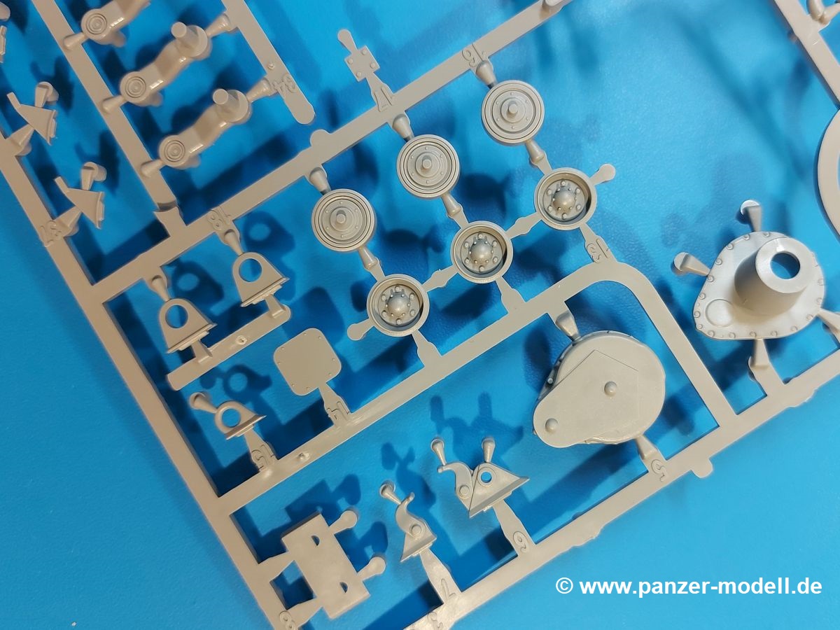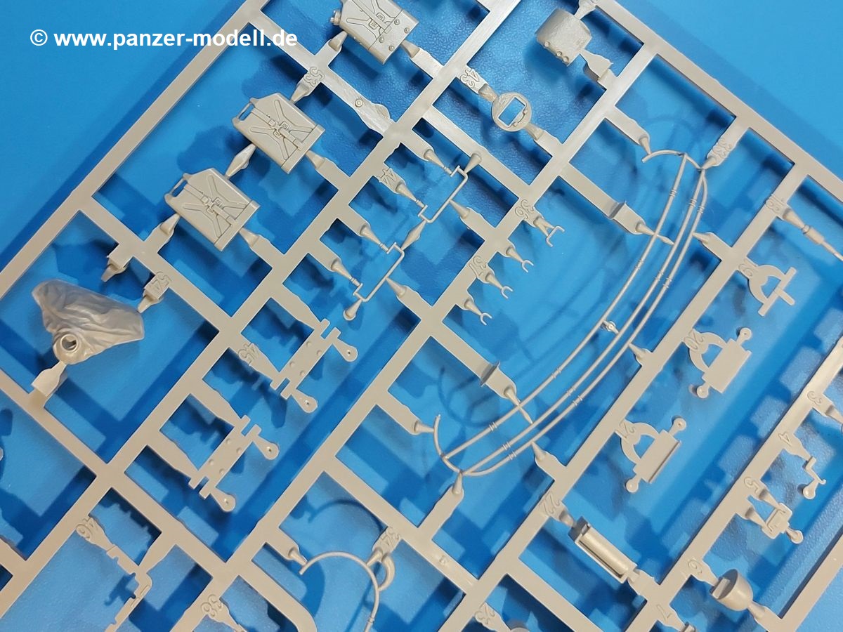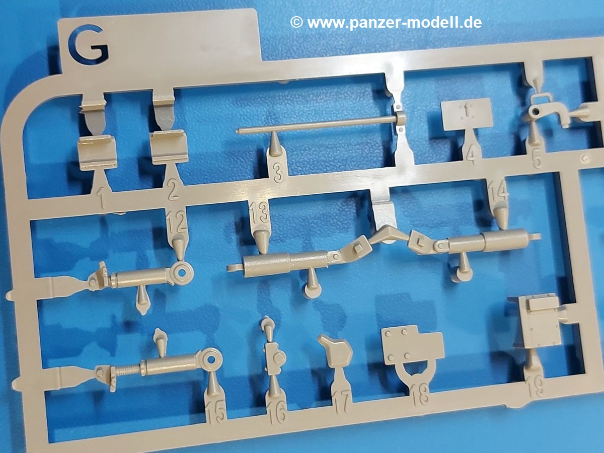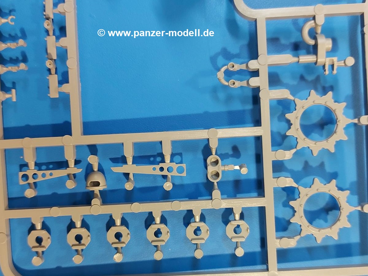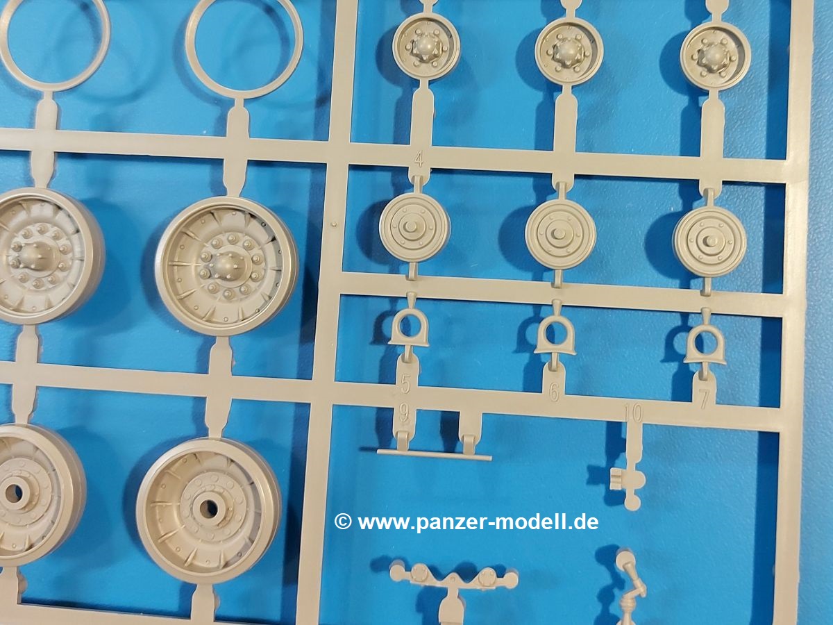 Das Original: Der M-60 ist ein Kampfpanzer aus der Zeit des kalten Krieges, der auch heute noch bei einigen Ländern im Einsatz steht. Er war der Nachfolger des M-48, was man bei der ersten Version noch deutlich an der Turmform sehen konnte. Ab der Version M-60 A1 bekam er einen größeren, neu konzipierten Turm. Er wiegt ab A1 fast 53 Tonnen und erreicht mit seinem 750 PS Motor eine Höchstgeschwindigkeit von 48 km/h auf der Straße und 32 km/h im Gelände. Seine Bewaffnung besteht aus einer 105 mm M68 Kanone, einem M240 MG und einem M85 MG. Zum Gefecht stehen der 4-köpfigen Besatzung 63 Schuss 105 mm, 6000 Schuss 7,62 mm und 900 Schuss 12,7 mm Munition zur Verfügung. Konzipiert um gegen sowjetische T-54 bestehen zu können, konnte er sich in der Operation Desert Storm auch gegen T-55 und T-72 behaupten. Im Laufe der Jahre erhielt er weitere Kampfwertsteigerungen, zuletzt als M-60 A3 TTS. Der Bausatz: Bereits vor 2 Jahren hatte TAKOM den M-60 A1 mit ERA herausgebracht. Danach war in Richtung M-60 erst einmal Ruhe. Nun liegt vor uns der ursprüngliche M-60 A1 Der Karton ist 380 x 250 x 85 mm groß und gut bepackt. Die Spritzlinge sind in größtenteils wieder verschließbaren Klarsichttütchen verpackt. Wir finden im Karton 11 hellgraue Spritzlinge, 2 Klarsichtspritzlinge, die Unterwanne, eine PE-Platine, 1 Draht, 2 Stahlstifte und 1 Decalbogen. Dazu kommt eine 20-seitige Bauanleitung. Die Unterwanne ist einteilig und weist bereits viele, feine, saubere Details wie Notausstiegsluke, Wartungsdeckel und für die Aufnahme der Laufwerkskomponenten auf. Hinzu kommen feine, aber deutliche Gussnummern. Auch die Gussstruktur ist gut wiedergegeben. Die Laufwerkskomponenten bestehen aus den Stoßdämpfern und Endanschlägen der Schwingarme. Diese setzen sich mehrteilig zusammen und werden dann fest und arretiert in die Aufnahmen in der Unterwanne eingeklebt. Die Laufrollen setzen sich aus den Radkörper und der Laufrollengummierung in Spritzguss zusammen, wobei der innere Teil der Doppellaufrolle einteilig ausgeführt ist. Der Detailgrad ist hier wirklich höchst erfreulich und scharf und durch die separate Gummierung für die Außenlaufrolle bekommt man perfekt die markante M60 Laufrolle mit der Hinterschneidung des Felgenrandes dargestellt. Die Oberwanne besteht aus einem Teil, das den Vorderrumpf (mit offen darstellbarer Fahrerluke und Aussparungen für die Winkelspiegel) und die Motorabdeckung mit den geriffelten Wartungsklappen umfasst. Die Kettenbleche werden mit gelochten Halterungen, vielen großen, aber fein detaillierten Staukästen versehen und später separat an die Wanne geklebt. Die markanten Hecktüren mit ihren Schrägriffelungen weisen eine gute Tiefe auf. Im Bausatz liegt auch noch die Hecktür zum Verbau des Teifwatauspuffs bei, ist aber nicht für diesen Bausatz vorgesehen. Der Turm besteht aus Unter- und Oberteil. Wie bereits an der Wanne konnten wir eine gute Gußstruktur und Gußnummern entdecken, die auch die Kommandantenkuppel auszeichnen. Die Kuppel lässt sich schwenkbar bauen, ebenso das 12,7 mm MG, wenn man sich für die Version ohne Allwetterplane entscheidet. Die Kommandanten- wie auch die Ladeschützenluke können offen oder geschlossen angebaut werden. Die Abschleppseile werden aus Kupferdraht und Seilkauschen aus Plastik hergestellt und in die Haltehaken aus PE jeweils vom Turmheck zu den Seiten geführt. Der Turmstaukorb besteht aus 7 Plastikteilen und 2 PE-Gittern. Während man das Bodengitter so verkleben kann, muss das zweite Gitter erst mittels einer im Bausatz enthaltenen Biegeform gebogen werden. Die 105mm M68 Kanone besteht aus einem einteiligen Rohr, leider ohne Züge und Felder an der Mündung, und wird mit dem 2-teiligen Rauchabsauger ergänzt. Da die Blende samt Plane ausgebildet ist, wird die Kanone nicht höhenrichtbar sein. Der große Schießscheinwerfer hat schöne Innendetails, die auch durch die große, kristallklare Scheibe gut zu sehen sein werden. Die Halterung des Scheinwerfers hat mit 10 Teilen doppelt so viele Teile wie der Scheinwerfer selbst. Die Decals sind seidenmatt glänzend und scharf gedruckt. Damit lassen sich 5 Fahrzeuge darstellen: